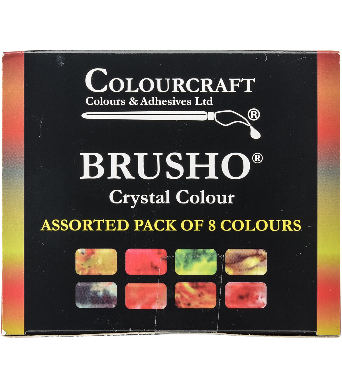 Explore different creative effects with the Colourcraft Brusho Pack Of 8 Crystal Colors Set. These versatile watercolor ink crystals can be used on paper, canvas or even wood. Sprinkle them directly on a wet substrate, wet brush, painting knife, or texture tool to create abstract patterns. Dissolve the ink crystals in water and use them in a spray bottle, or add them to wax paste or gel mediums for more density and volume. This pack contains crystal colors and one instruction sheet.