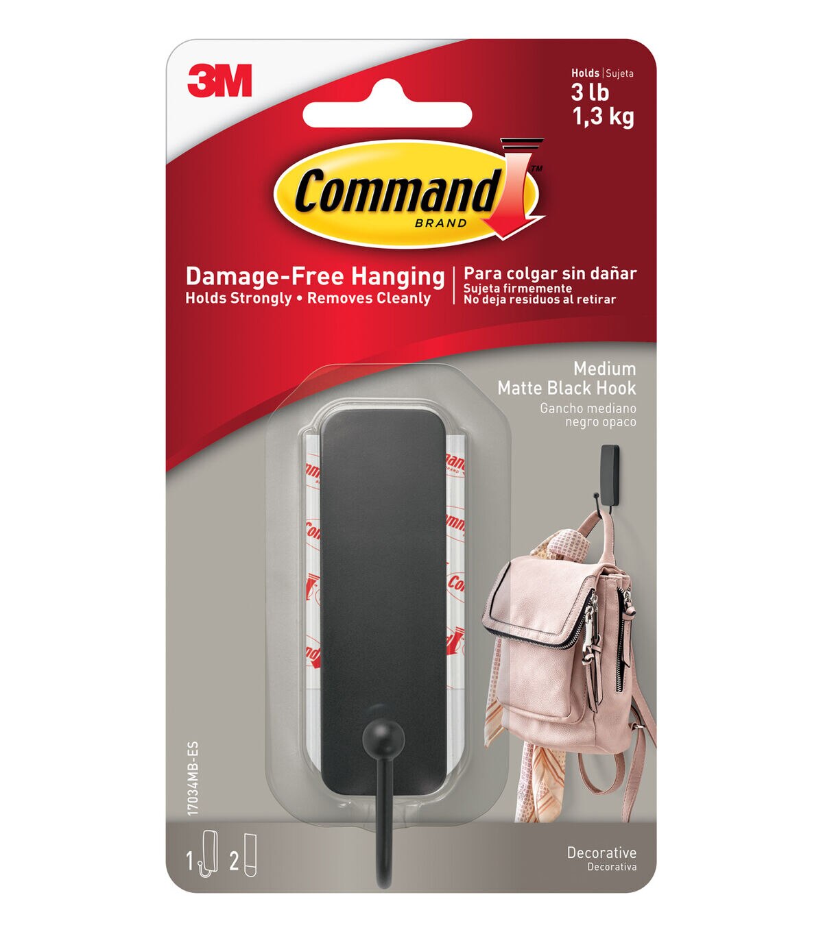Hanging backpacks, coats, jackets, totes and more from the wall will be easy with the Command Medium Decorative Hook-Matte Black. It is made of metal wire for added strength, and can hold up to 3 pounds. You can add this hook to any wall in your home and also remove it without damaging the paint.