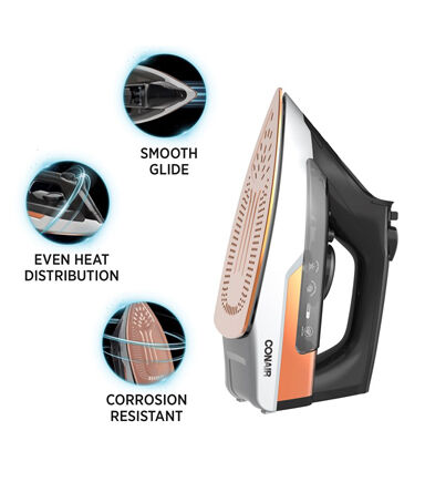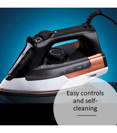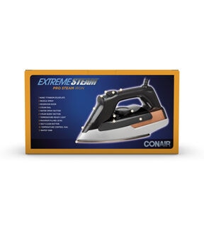 The Conair ExtremeSteam Pro Steam Iron comes with a nano titanium soleplate with smooth glide. This 1875-watt iron features vertical steam function with steam burst, steam dial, temperature control dial, pointed tip for getting into corners and navigating around buttons, and anti-calc, anti-drip, self-clean and auto off function.