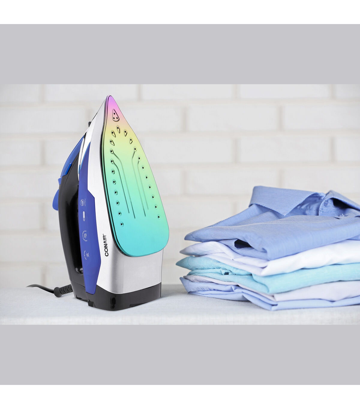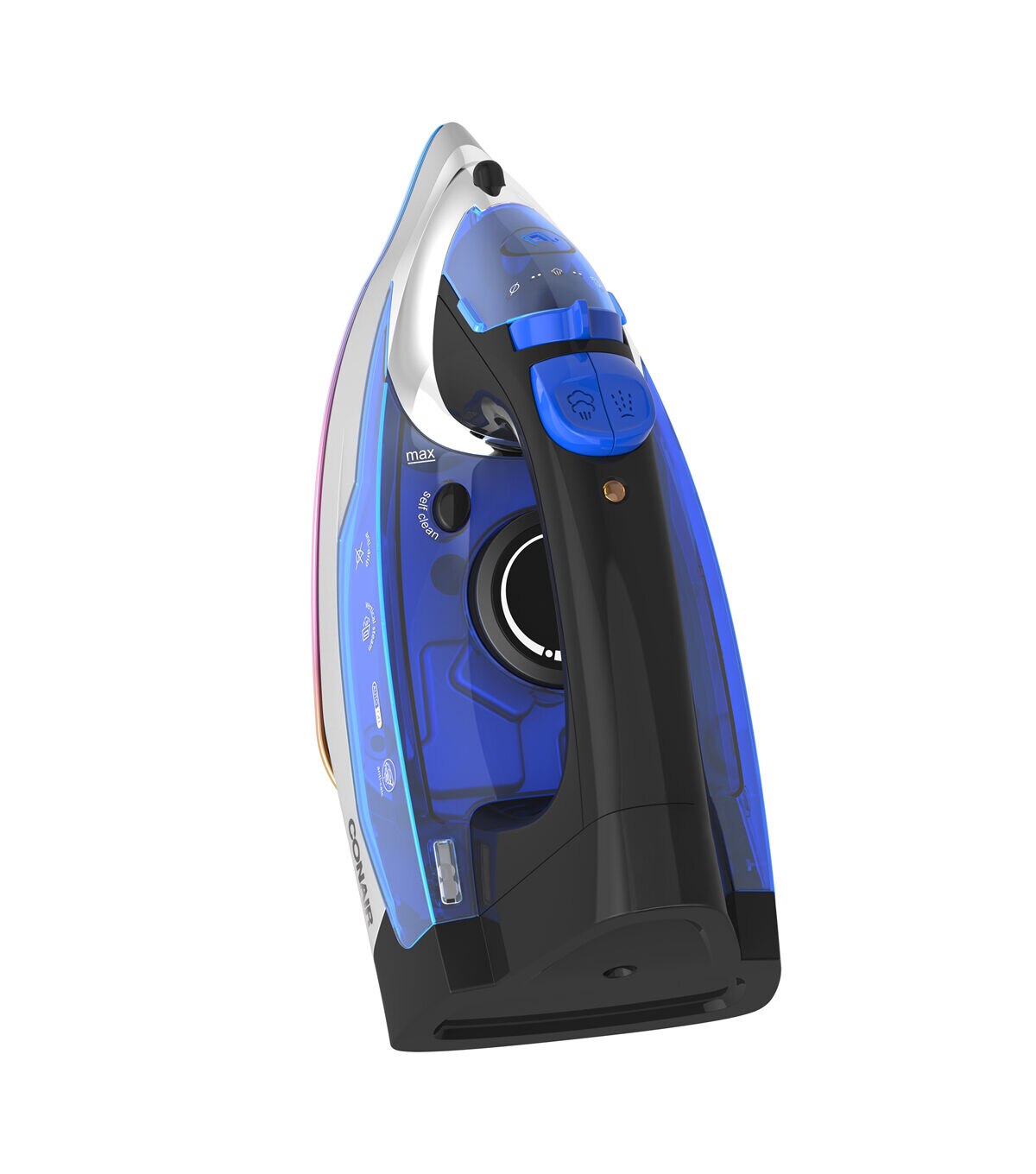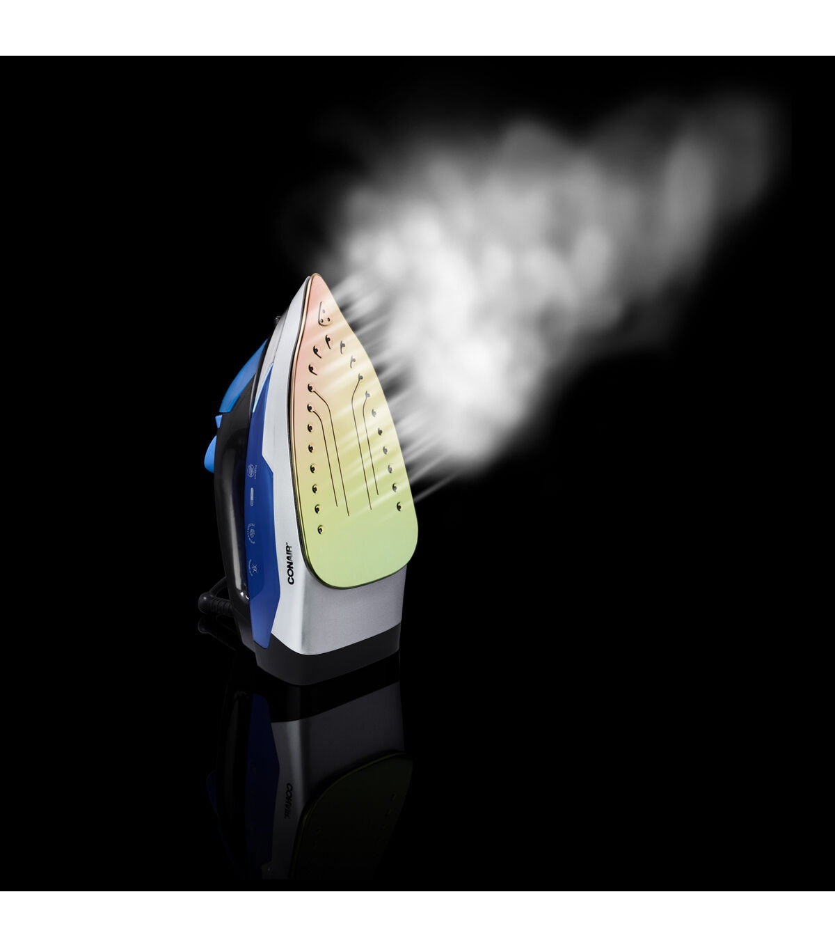 The Conair ExtremeSteam Super Steam Iron comes with a nano titanium soleplate. With 1550 watts of extreme power, this iron has three temperature settings catering to all fabrics. Its steam rate is approximately 20 grams per minute. It features anti-calc, vertical steam, self-clean and anti-drip functions. Its ultra quick heat up time is 42 seconds.