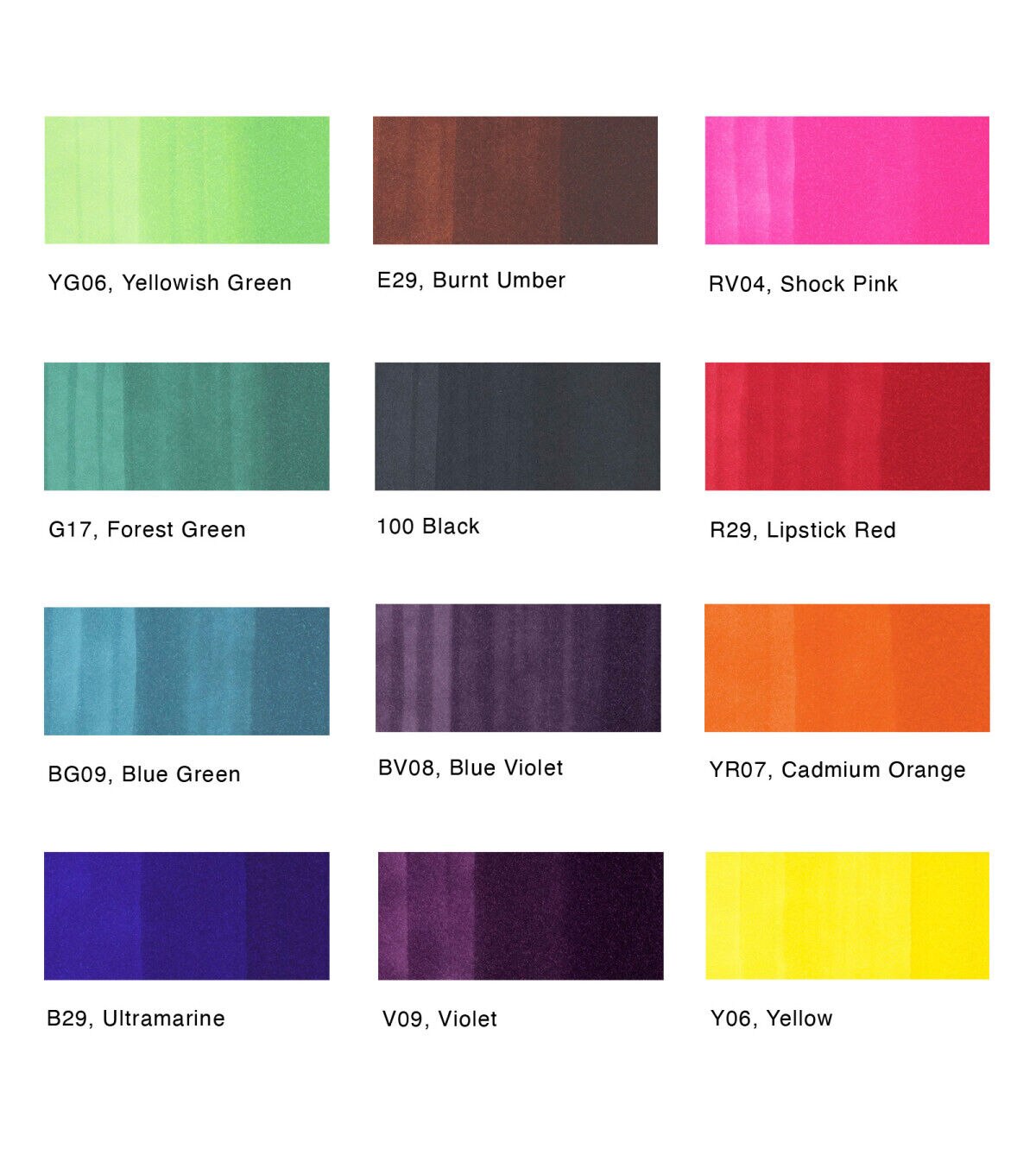 These Copic Ciao markers are versatile double-ended refillable markers with fast-drying ink. Ciao is a perfect marker for beginners. In addition to the super brush tip and a medium broad tip combo, the barrel is a slightly smaller size, making the it fun and easy for young artists to use. Colors included are YG06, BV08, G17, V09, BG09, RV04, B29, R29, E29, YR07, 100, Y06.