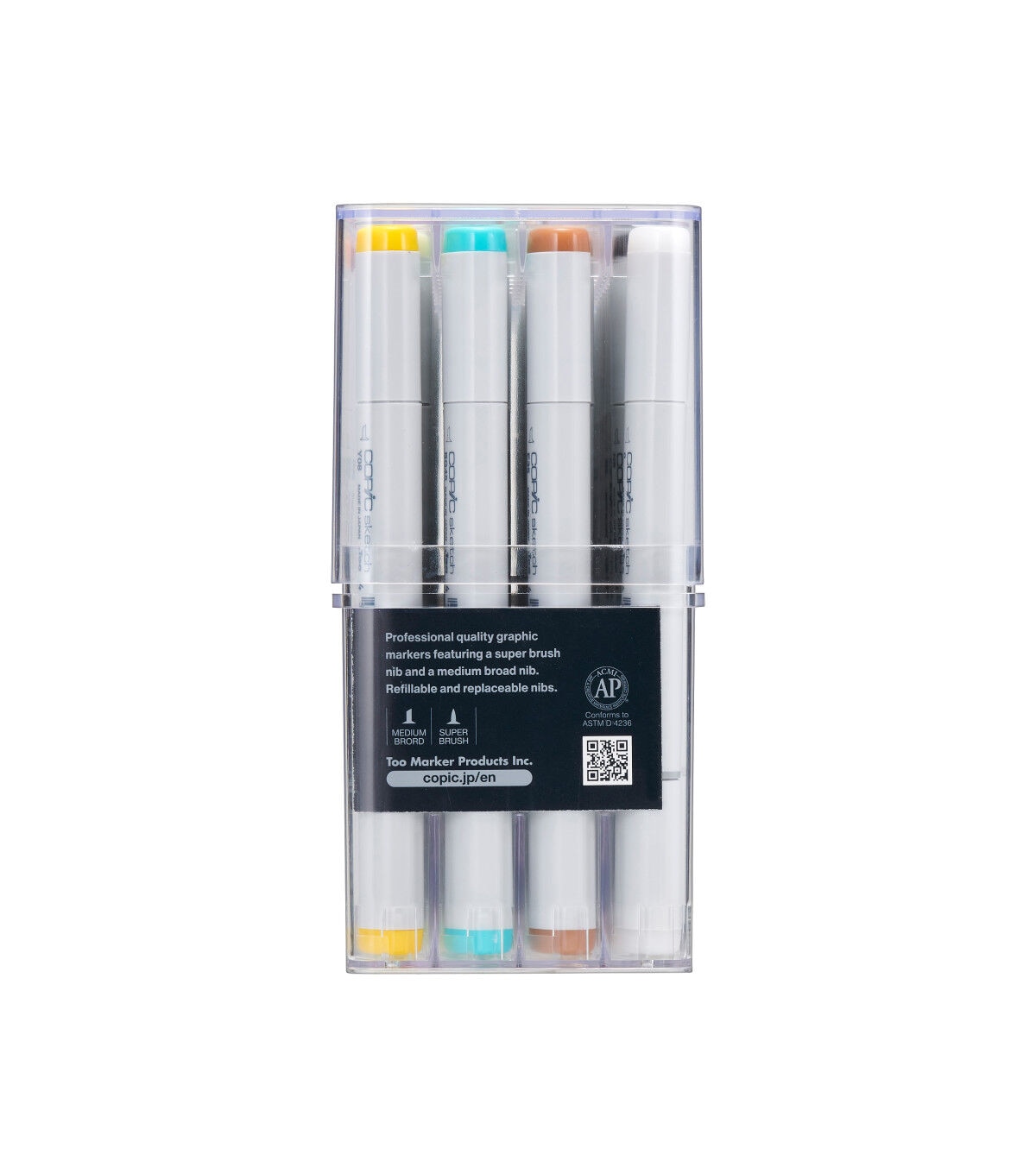 COPIC Sketch is the ultimate flexible graphic marker. Its double ended iconic design features a flexible brush nib as well as a medium broad nib great for expressive strokes, building up tone, blending colors, shading, finer details and lines, and large streak free coverage. They are made with the highest grade of expertly formulated alcohol and dye-based inks.