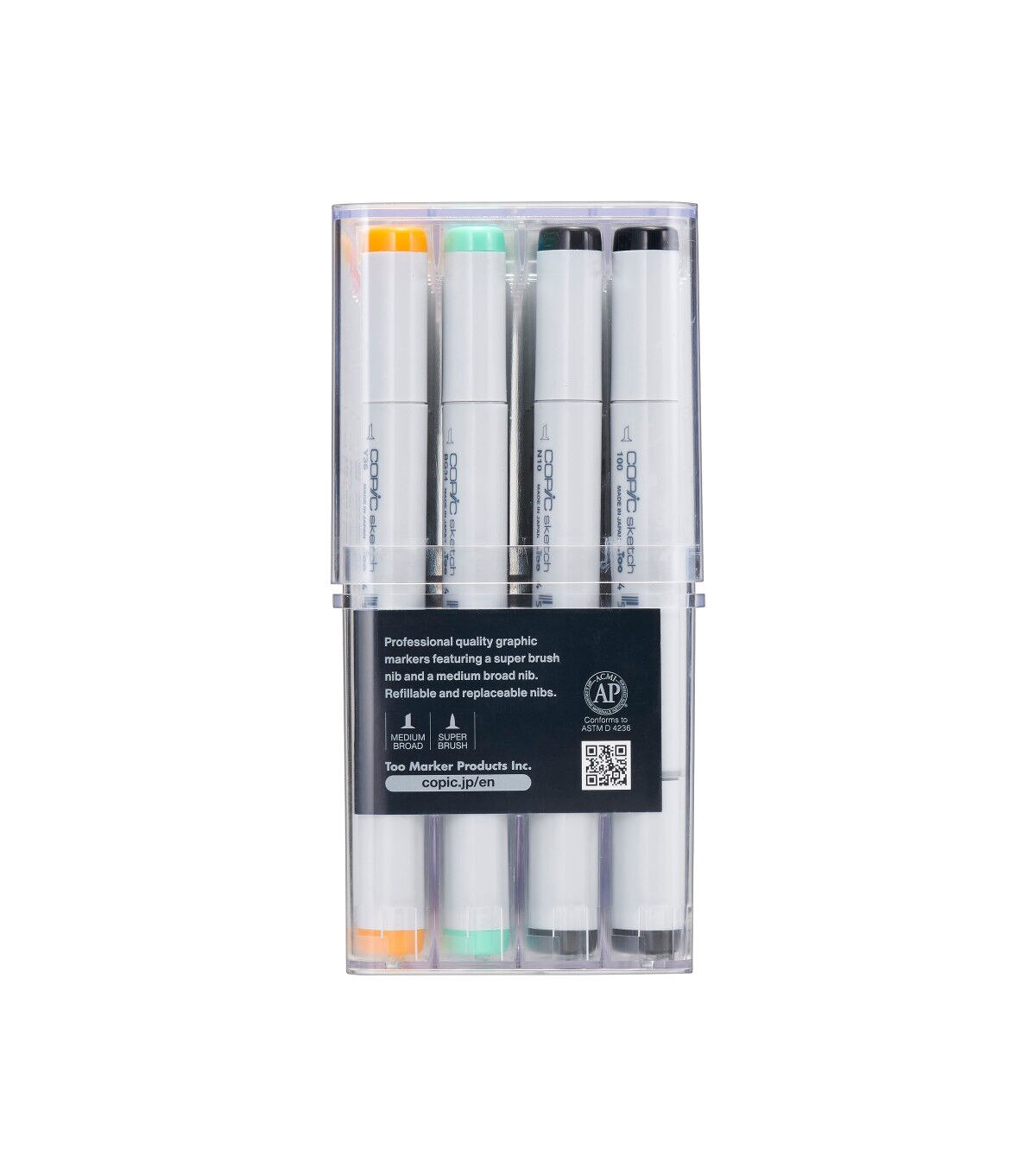 COPIC Sketch is the ultimate flexible graphic marker. Its double ended iconic design features a flexible brush nib as well as a medium broad nib great for expressive strokes, building up tone, blending colors, shading, finer details and lines, and large streak free coverage. They are made with the highest grade of expertly formulated alcohol and dye-based inks.