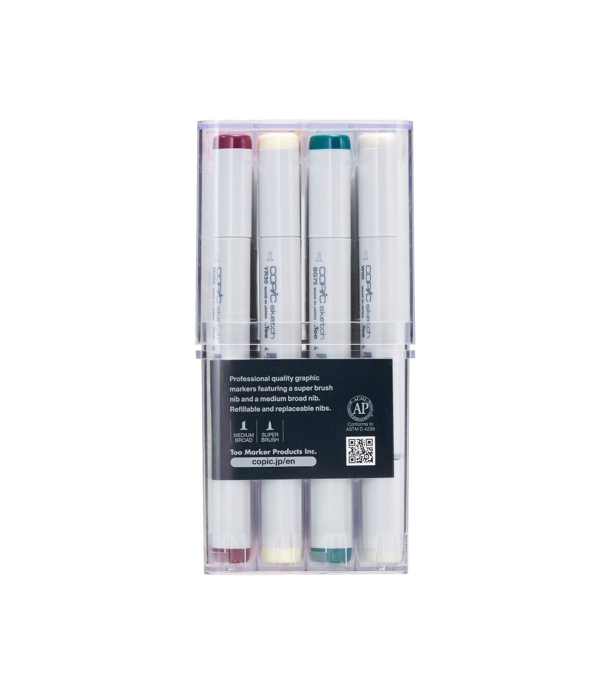 COPIC Sketch is the ultimate flexible graphic marker. Its double ended iconic design features a flexible brush nib as well as a medium broad nib great for expressive strokes, building up tone, blending colors, shading, finer details and lines, and large streak free coverage. They are made with the highest grade of expertly formulated alcohol and dye-based inks.