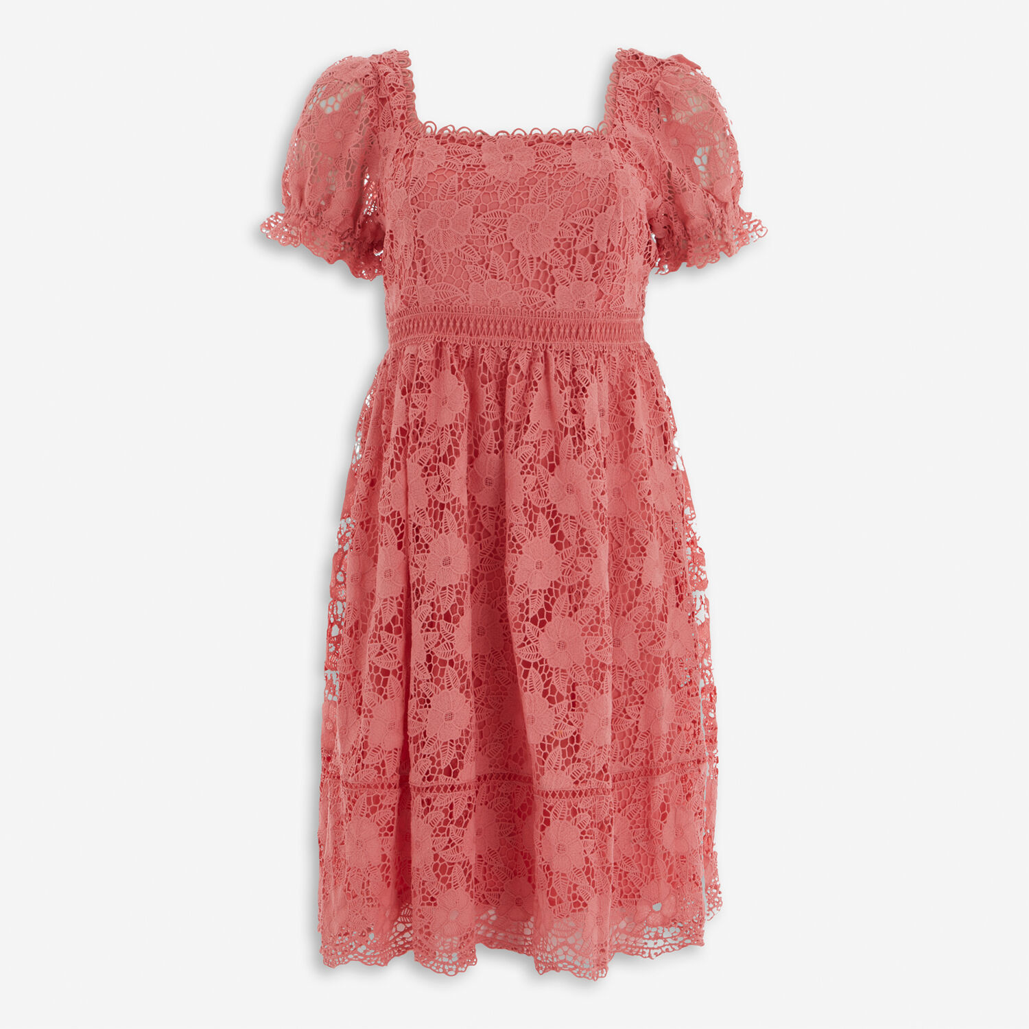 • Coral Crochet Lace Midi Dress