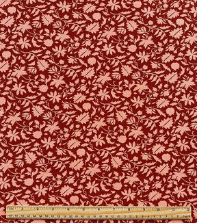 Coral Fall Leaves Double Brush Jersey Knit Fabric