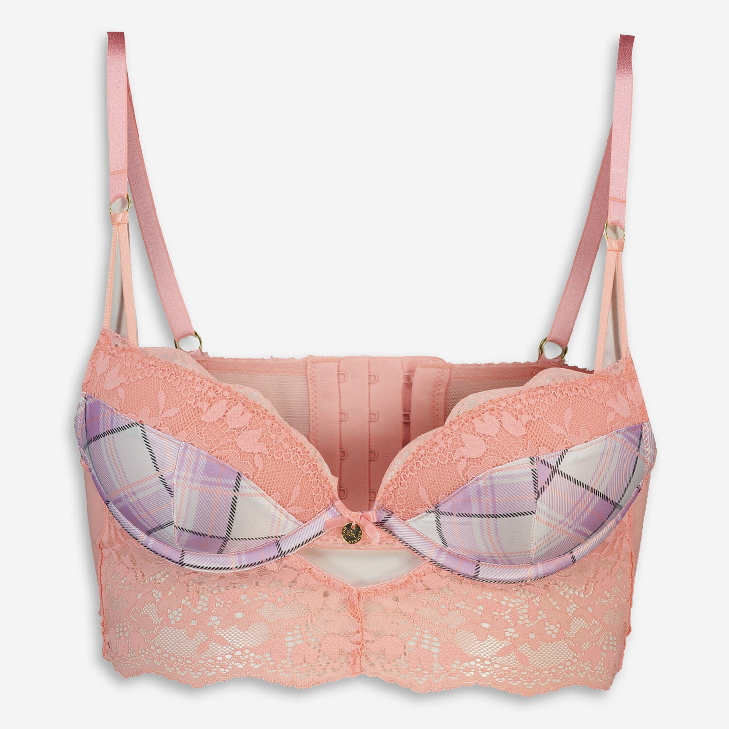 Coral & Lilac Check Elle Longline Bra