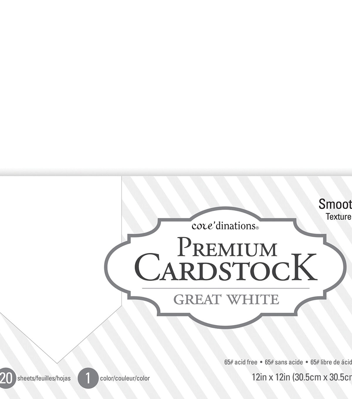 Core'dinations-Value Pack Smooth Cardstock: Great White. The perfect addition to your paper crafting projects! This package contains twenty 12x12 inch cardstock sheets (all twenty sheets are identical). Acid free. Imported.