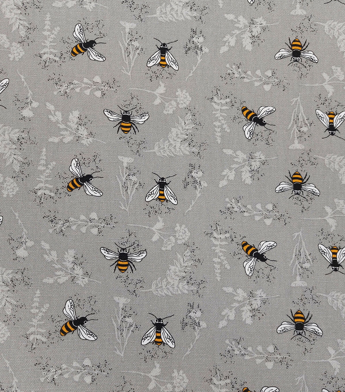 Cotton Canvas Grey Bee Fabric