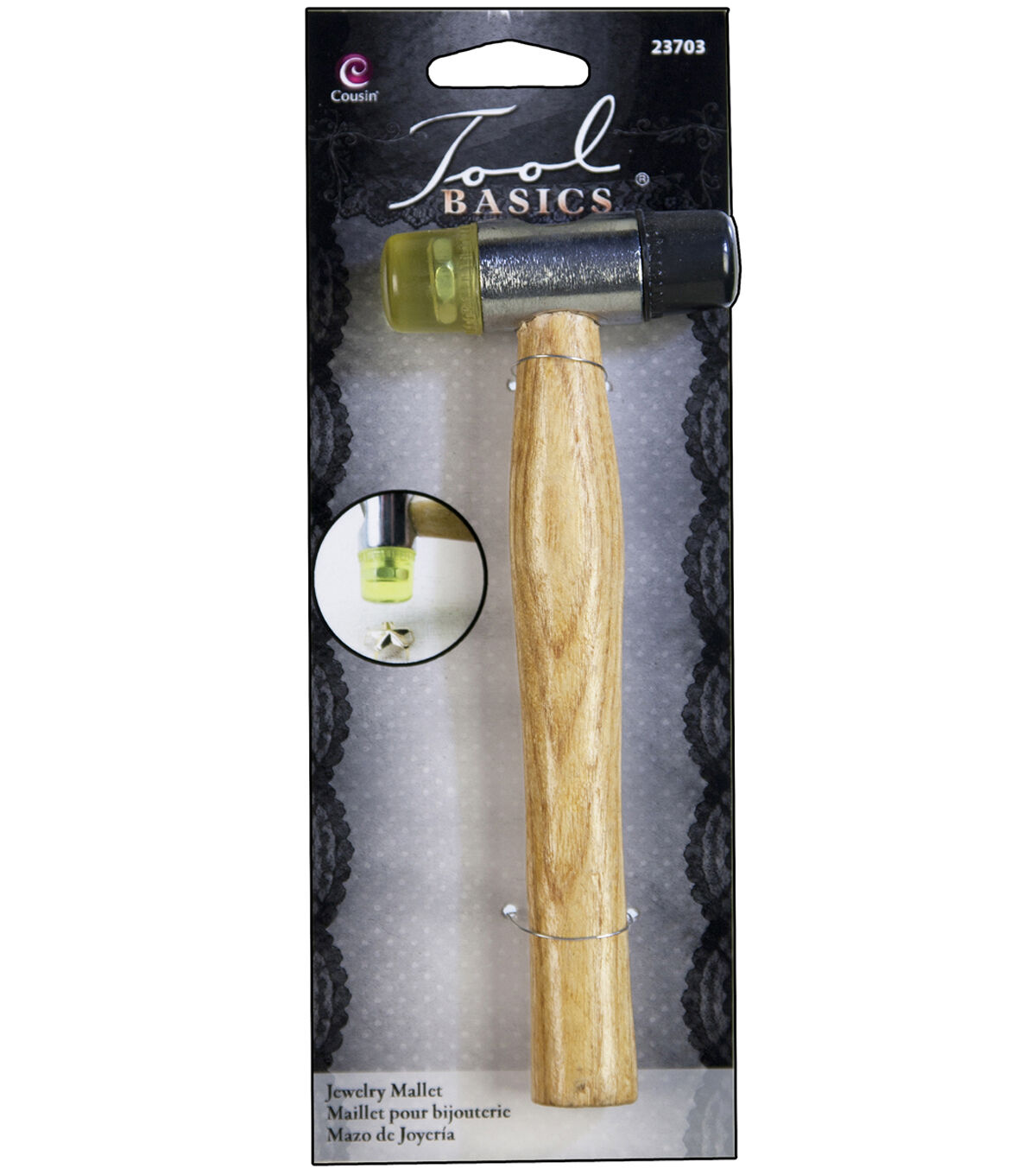 A versatile tool with detachable ends. Plastic / metal faces. Plastic head mallet is made of a non-porous material that will not mar and is easily cleaned. Excellent for applications with precious metals where marring is a problem. Metal head mallet is used for stamping and hammering metals which must not be scratched. The seasoned hardwood handle gives you a sure grip.