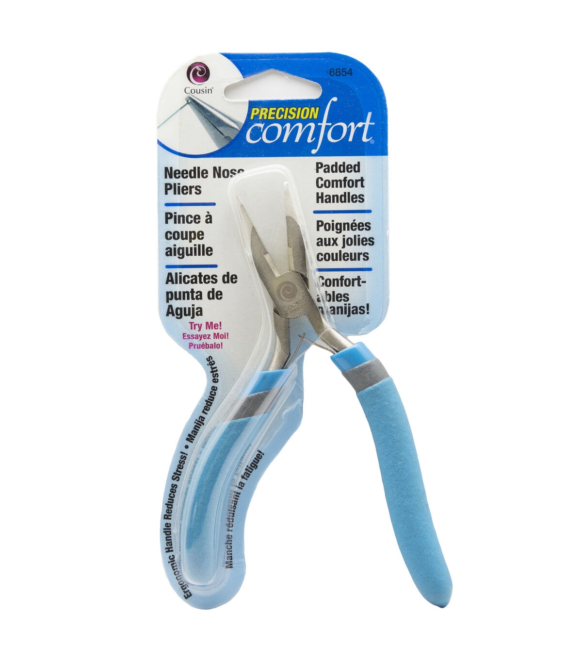 Perfect for curved edges, bending wire, making loops, wire wrapping and more, the Cousin Precision Comfort 5.5'' Needle Nosed Pliers are essential for DIY craft enthusiasts. It features a pointed nose and padded comfort handles that reduce stress and hand fatigue. Specially designed for either hand preference, this premium-quality needle nosed pliers can be flipped as per your comfort zone.