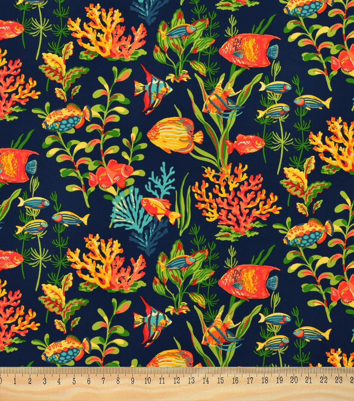 Dory features a unique aquatic scene printed on a 100% cotton base cloth. With fish and underwater plants, this fun pattern will bring a smile to your home.