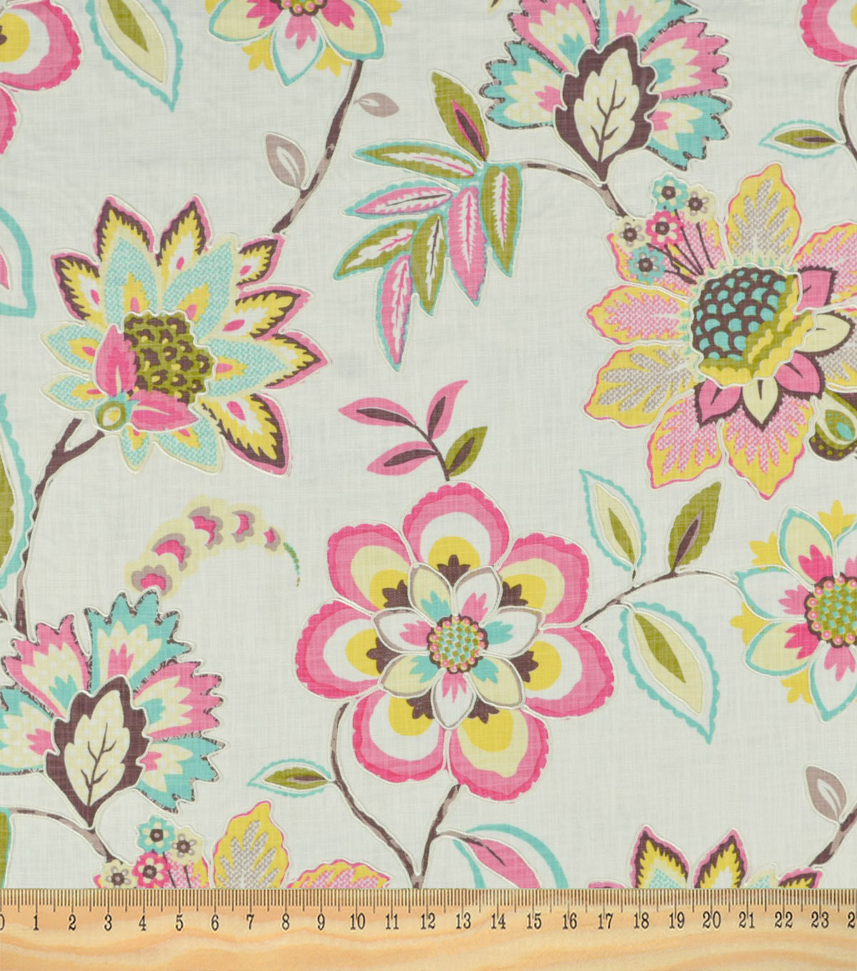 Combining a jacobean floral print design with random embroidered sections, Laylani is a truly special fabric that will bring enliven your home.