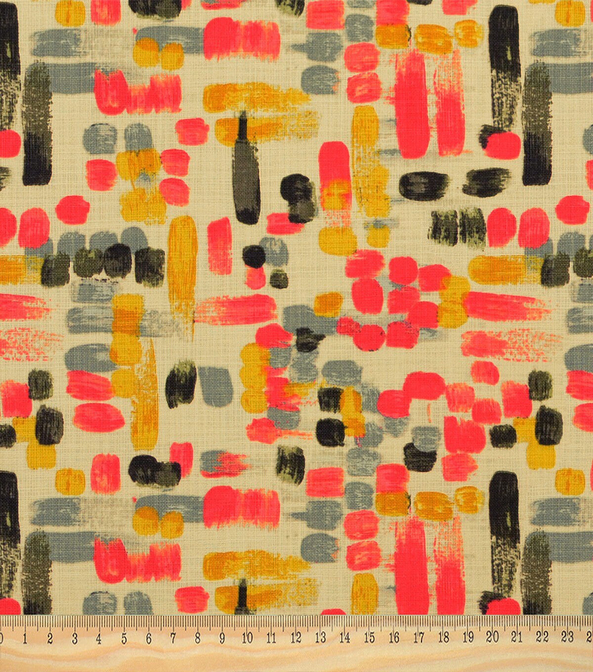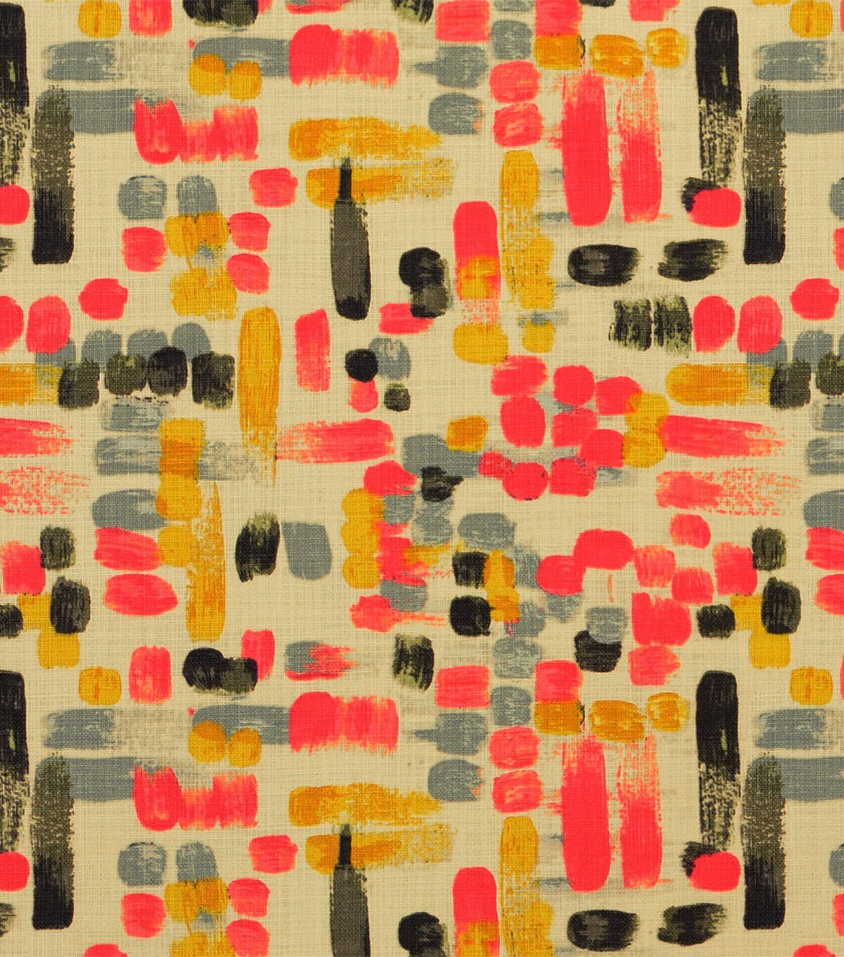Gigi features and abstract geometric print design. The design has irregular brush stroke look and is printed on a 100% cotton two-way slub base cloth. The non-directional layout makes this fabric very versatile.