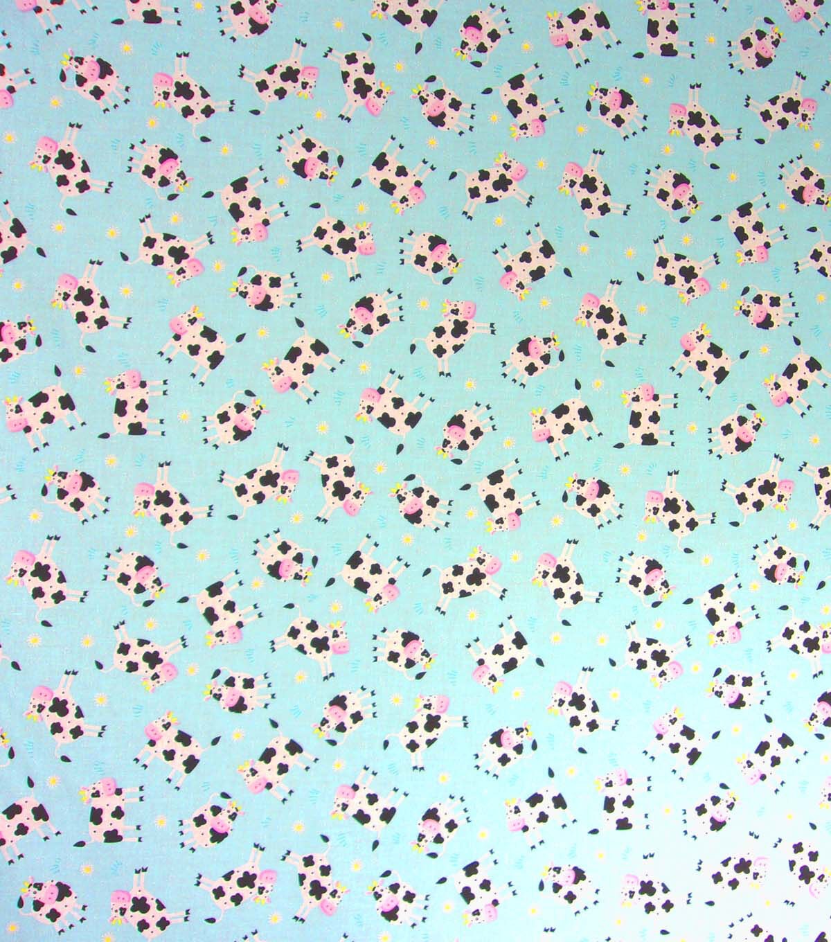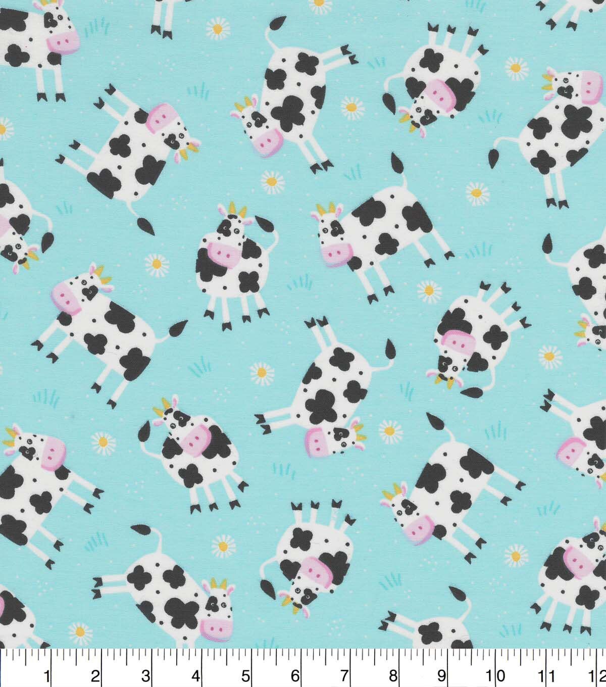 Cows & Floral on Blue Quilt Cotton Fabric by Quilter's Showcase