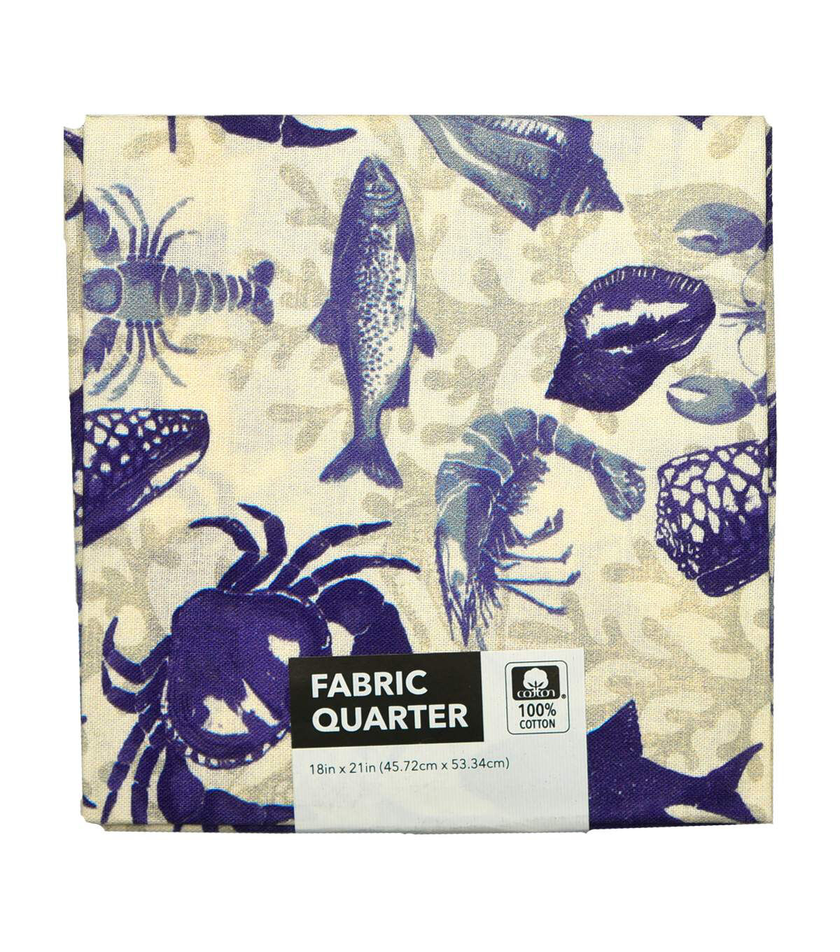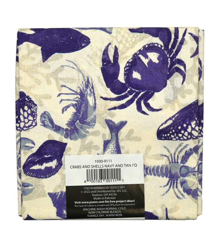• Crabs And Shells Navy And Tan Cotton Fabric Quarter