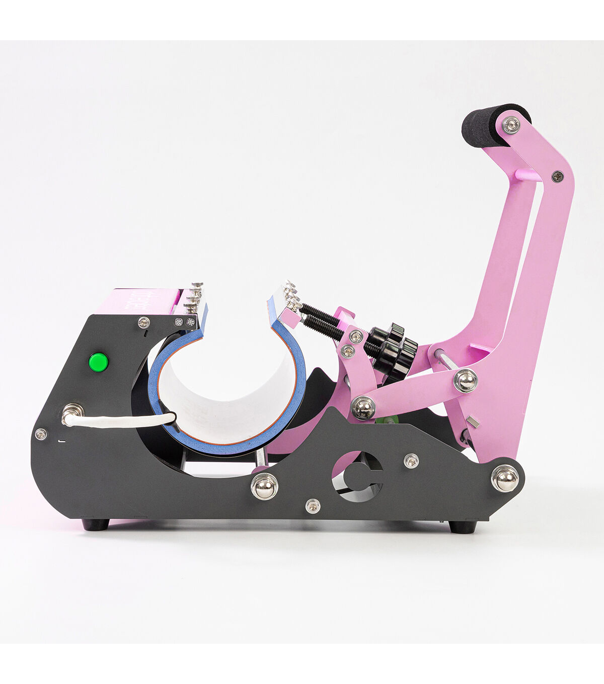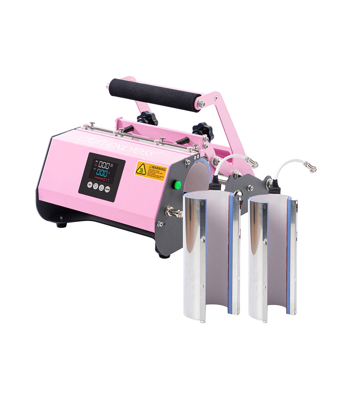 - 2-in-1 heat press capable of large image transfers and printing on drinkware blanks with diameters of up to 8.8cm, including 11oz mugs, 15oz mugs, and most metal water bottles