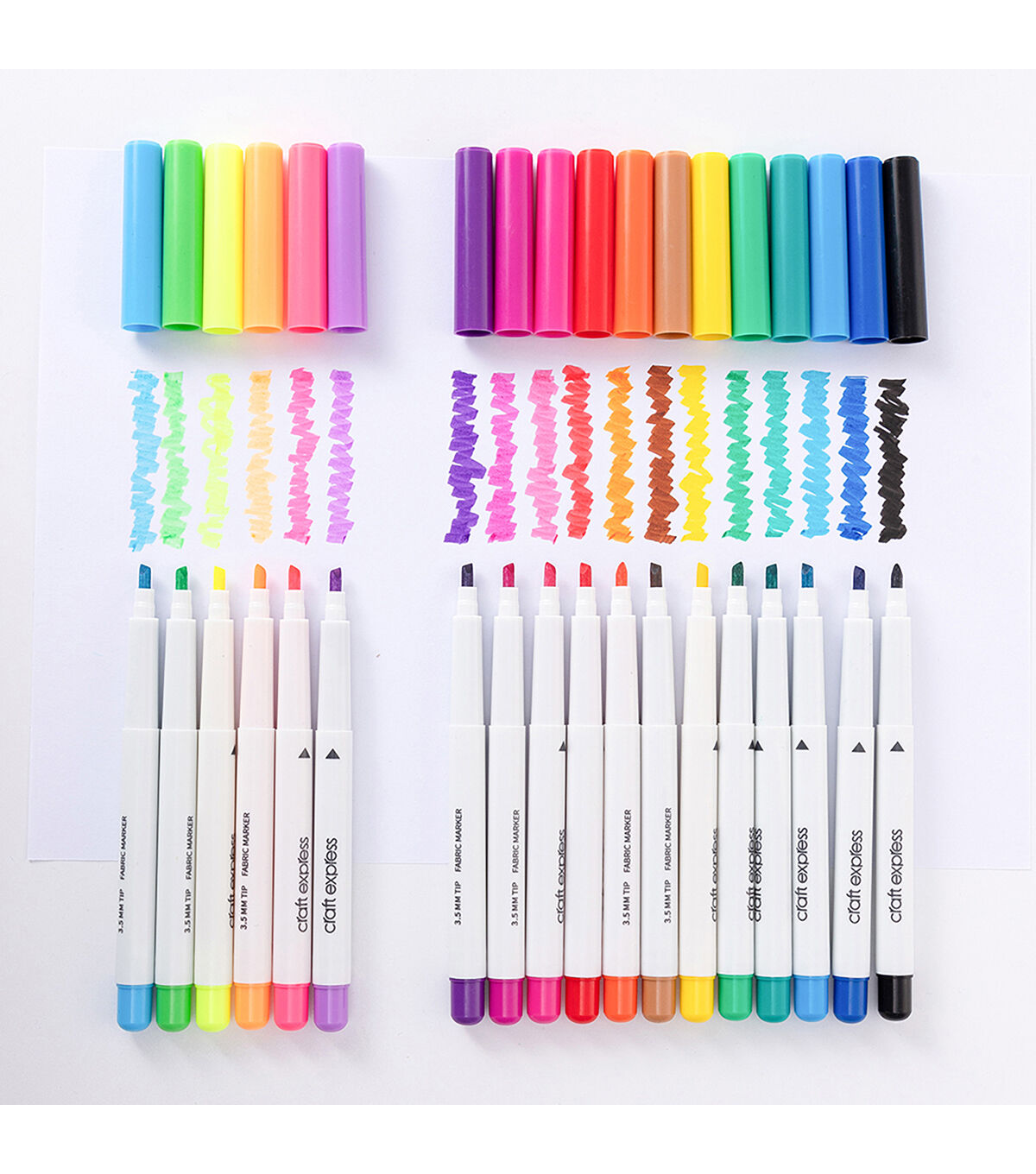 Let your imagination run wild! No heat transfer process, with our new 18-color fabric markers only, you can directly create your free style design on t-shirts, shoes, bags, hats, etc. They can be applied on and go smoothly on any fabric and make your items colorful and bright forever! 18 Colors Included Black, Red, Blue, Yellow, Green, Orange, Brown, Purple, Light Blue, Magenta, Dark Green, Pink, Fluorescent Red, Fluorescent Green, Fluorescent Orange, Fluorescent Purple, Fluorescent Light Blue, Fluorescent Yellow Add Personal Touch! Draw your ideas to add personal touch on your everyday looks, or make personalized gift for your loved ones. Simply draw your design, and iron it with a flat heat press or a non-steam iron to make it last forever. * For use on any fabric products with smooth surface * For use with Silhouette Cameo & Cricut cutting machines * Iron your work with a flat heat press or a non-steam iron. Features • Craft Express Joy Fabric Markers special for directly drawing on fabric products. • Top choice for artists, crafters, craft lovers, home business owners. • Other essentials (sold separately) include: cutting machines, fabric products, heat press machines or non-steam iron. Included • 12 Colors: Black, Red, Blue, Yellow, Green, Orange, Brown, Purple, Light Blue, Magenta, Dark Green, Pink • 6 Fluorescent Colors: Red, Green, Orange, Purple, Light Blue, Yellow