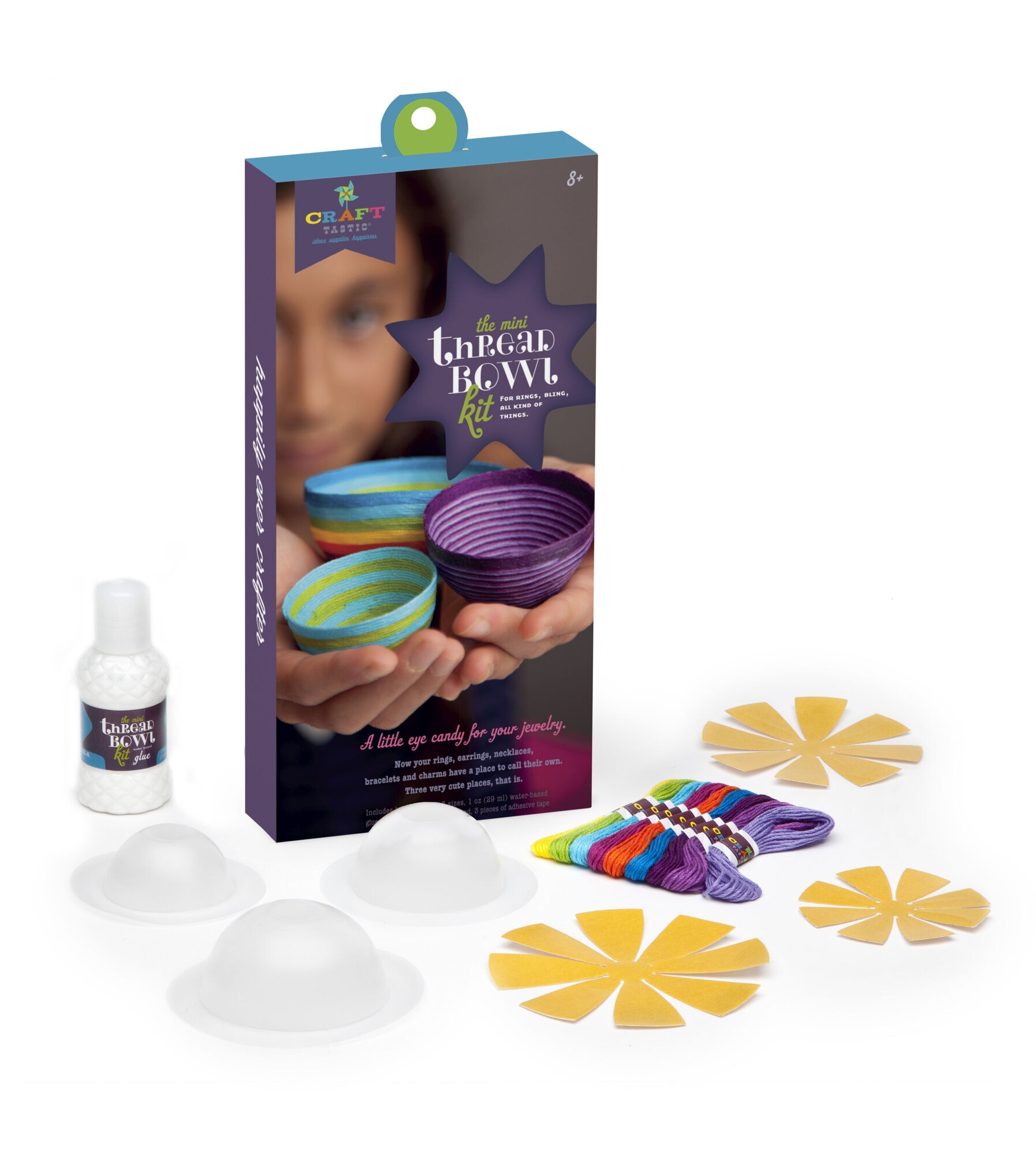 Craft-tastic Mini Thread Bowls Kit lets your kids make a little eye candy for their rings, bling and other cute things. These three bowls are both fun and functional and they’re easy-to-make, too. The craft kit gives you the molds and all the brightly colored thread to make three different-sized bowls.