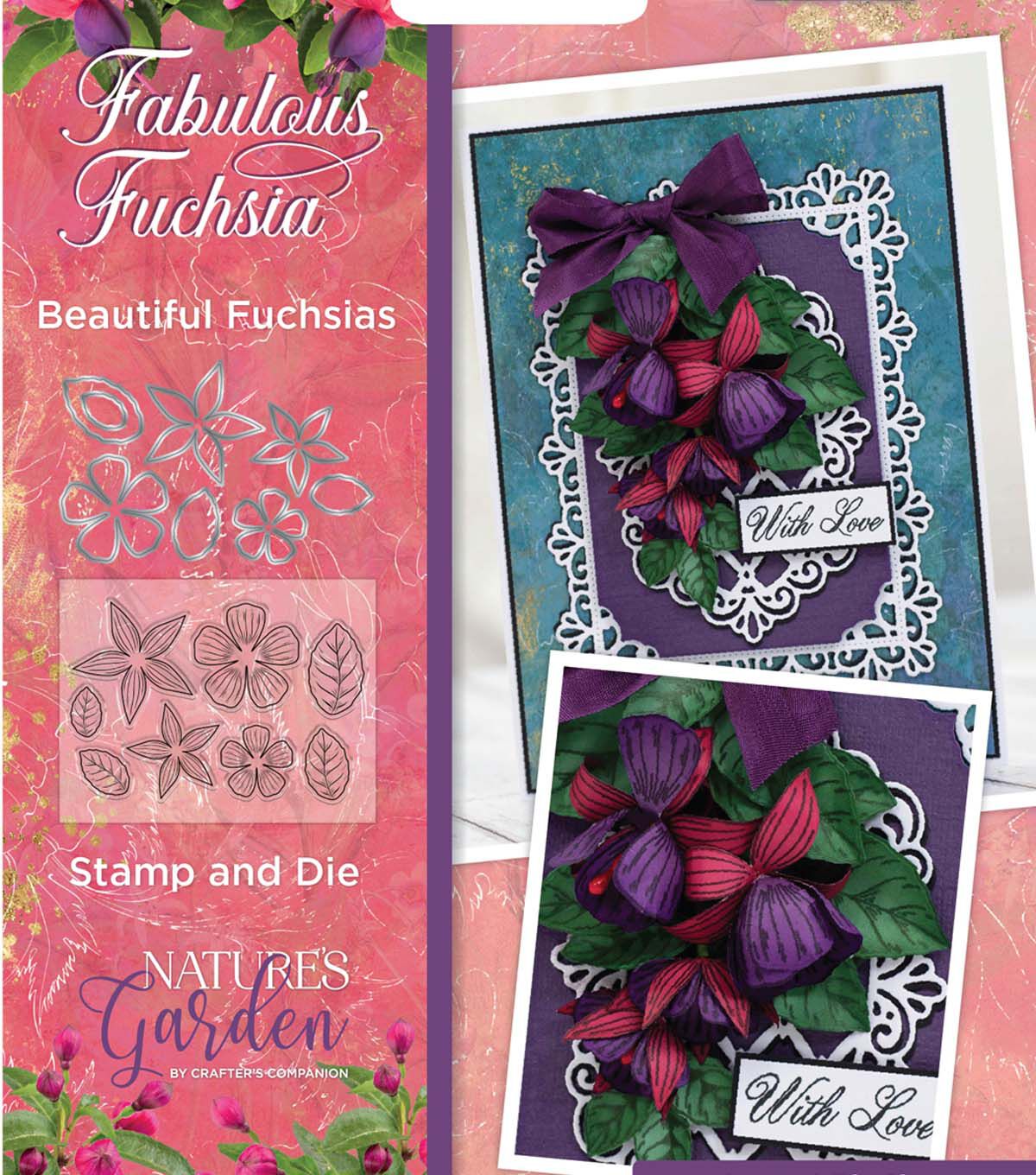 The Nature’s Garden Fabulous Fuchsia - Beautiful Fuchsia set includes eight stamps and eight matching dies to cut out and build detailed, 3D fuchsia flowers with ease!