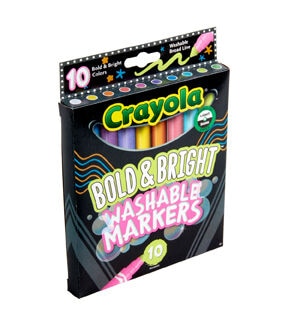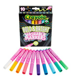 - Features 10 Broad Line Markers in Bold & Bright Crayola colors.
