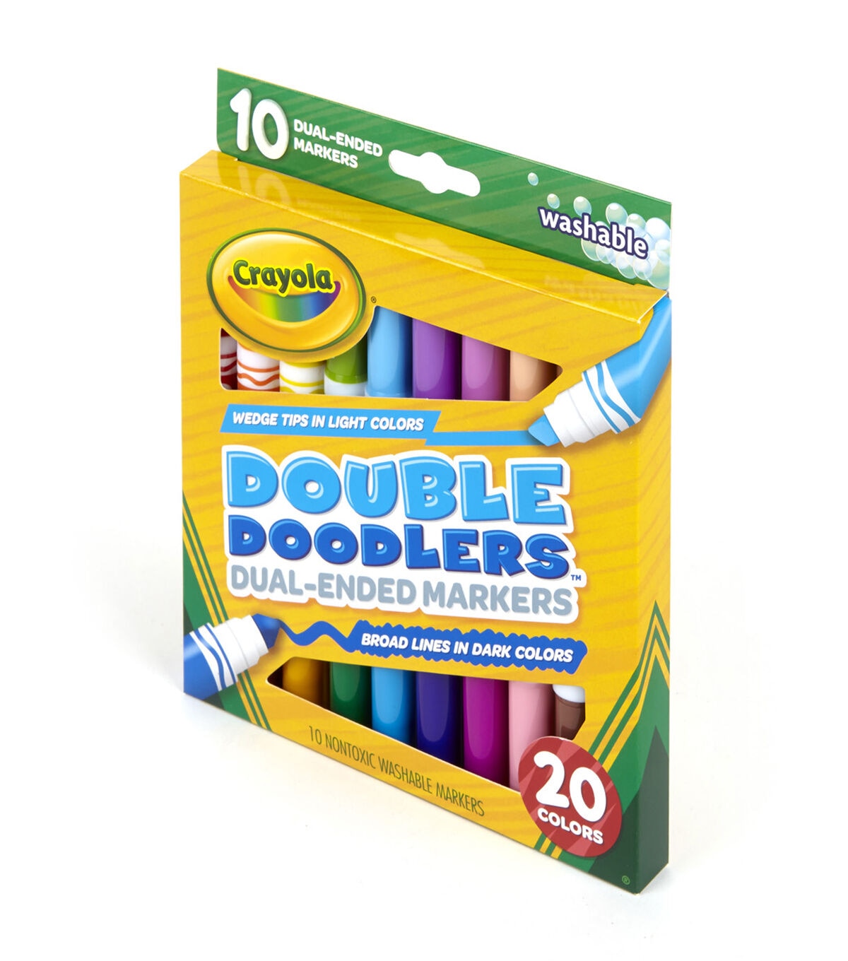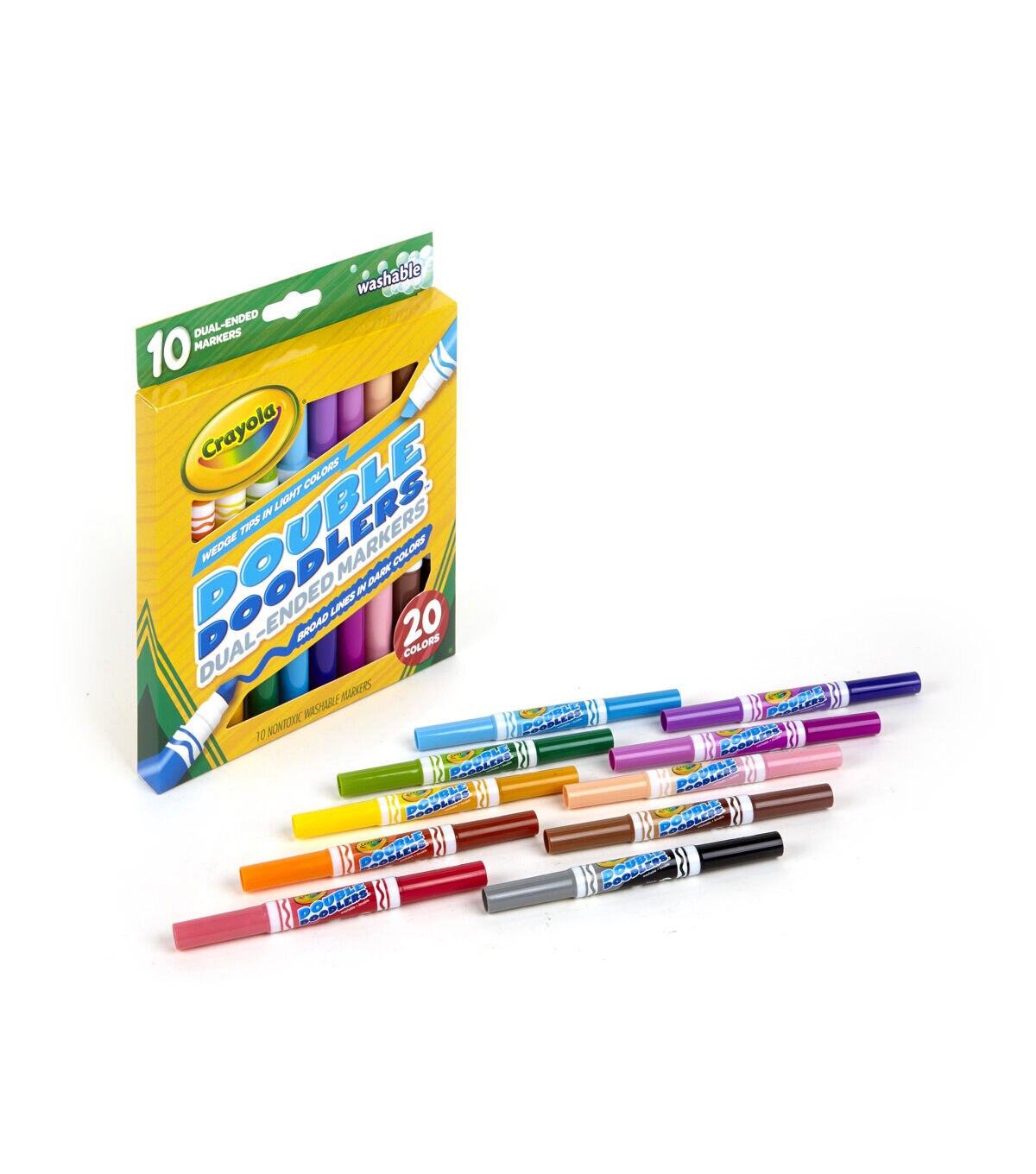- 10 Dual-ended markers – Broad line and Chisel Tip; 20 Assorted colors; Great for coloring large or small spaces; Great for all ages