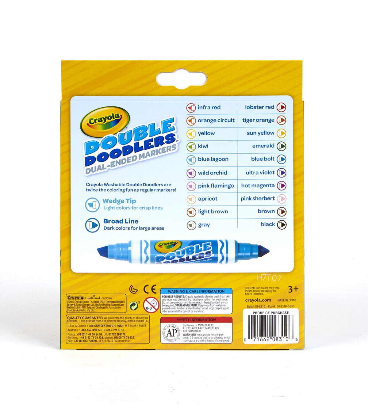 Total of 20 colors, with tips that provide just the right amount of color for large or small spaces! Strong and durable marker tips wear well for coloring and projects. Trusted washability, easily washing from skin and clothing. Made to encourage imaginative expression. Crayola markers colors with high-quality, vibrant ink. Crayola colored markers are available in a diverse range of options, such as broad line, fine line, glitter, metallic, emoji stampers, window markers and more. For the littlest artists, we offer washable markers, which help make cleanup a snap! For the classroom, we also sell markers in bulk packs. These are a fantastic and economical option to get your students and artists coloring regularly.