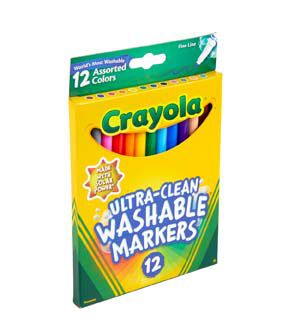 The same bright colors as regular Crayola Markers but with a truly washable formulation. These rounded, traditional markers serve as a great transition for a mature writing grip. The colors wash easily off skin and nearly all children's clothing.