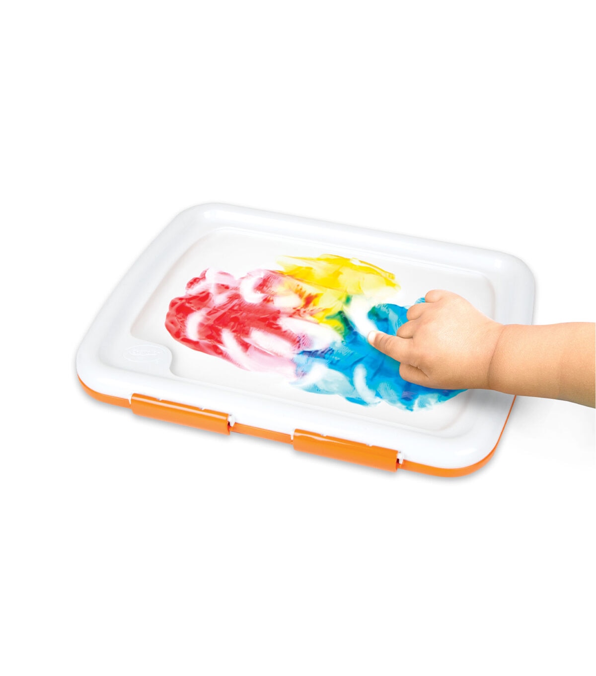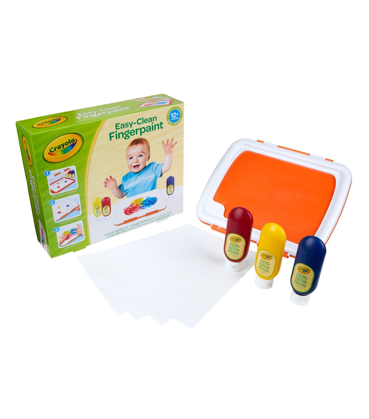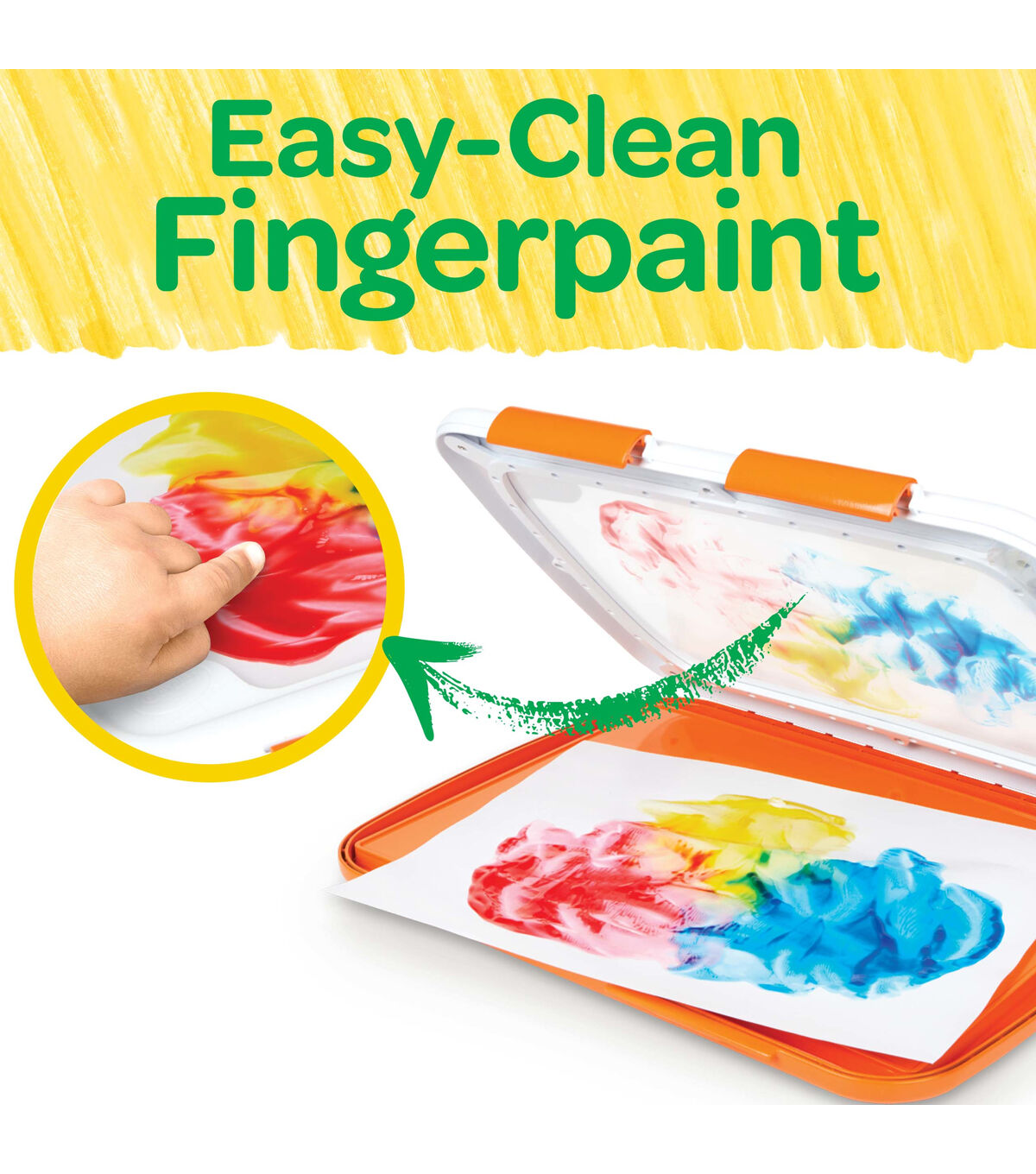 The Crayola Easy-Clean Finger Paint Set offers kids the tactile thrill of creating with their hands without all the mess! Little artists can finger paint on top of the flexible covering while the paint and paper are contained under the locked lid to contain the mess! And the finger paint unit can easily be washed in the sink or on the top rack of the dishwasher. The included Crayola Washable Paint colors include bold hues of Red, Blue and Yelllow. The paint washes from skin and most washable clothing. Ideal for toddlers age 1 and up.
