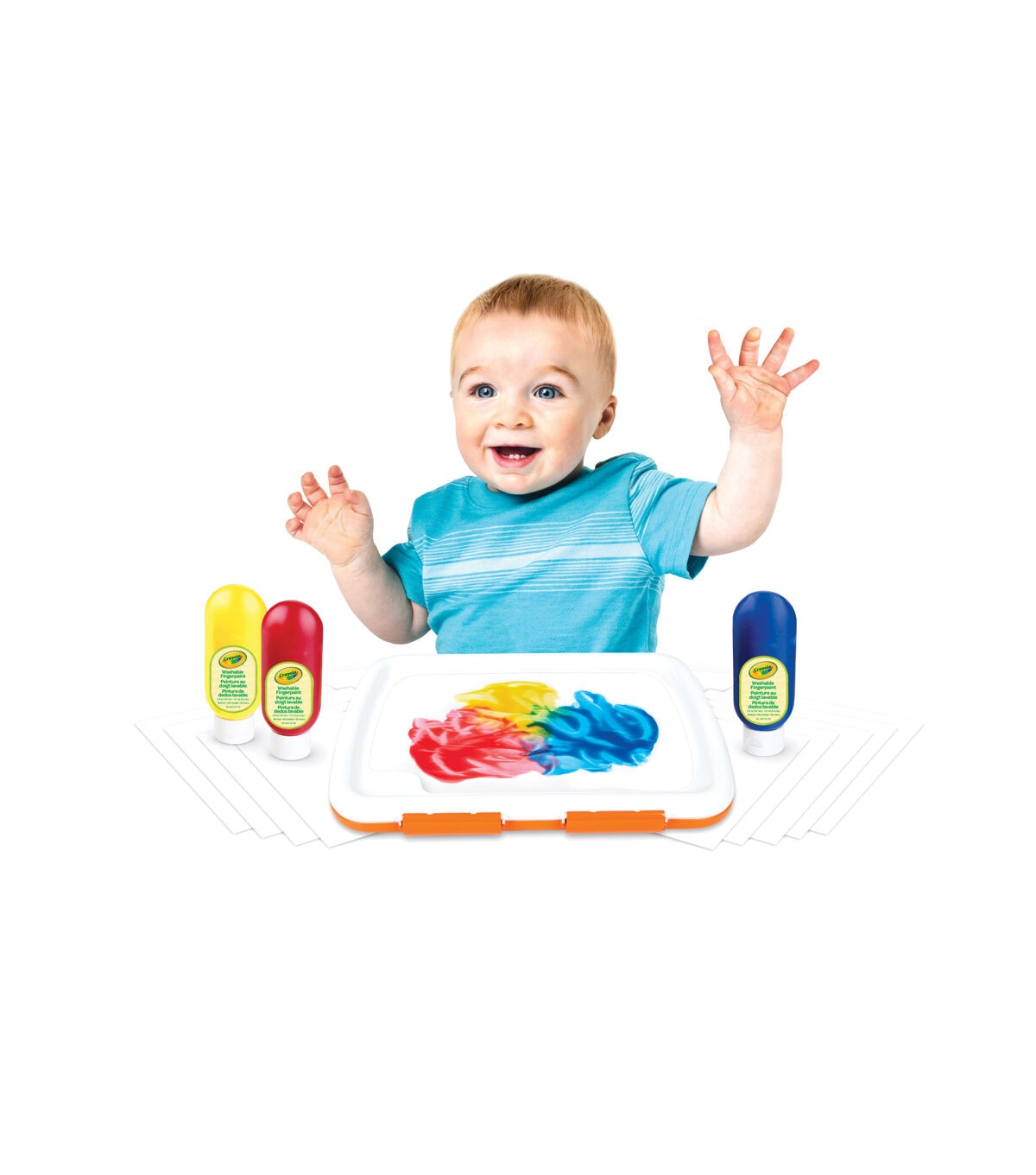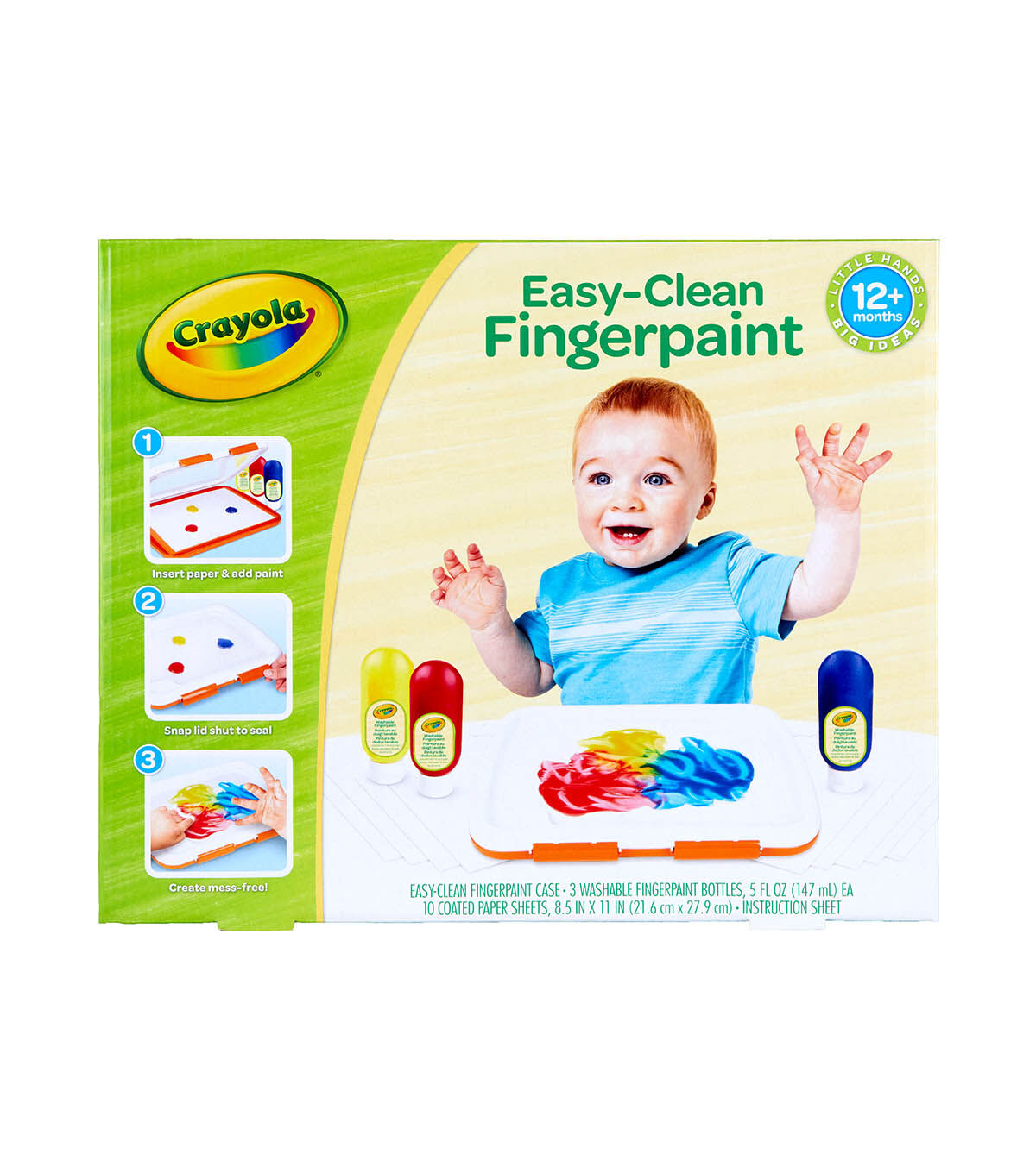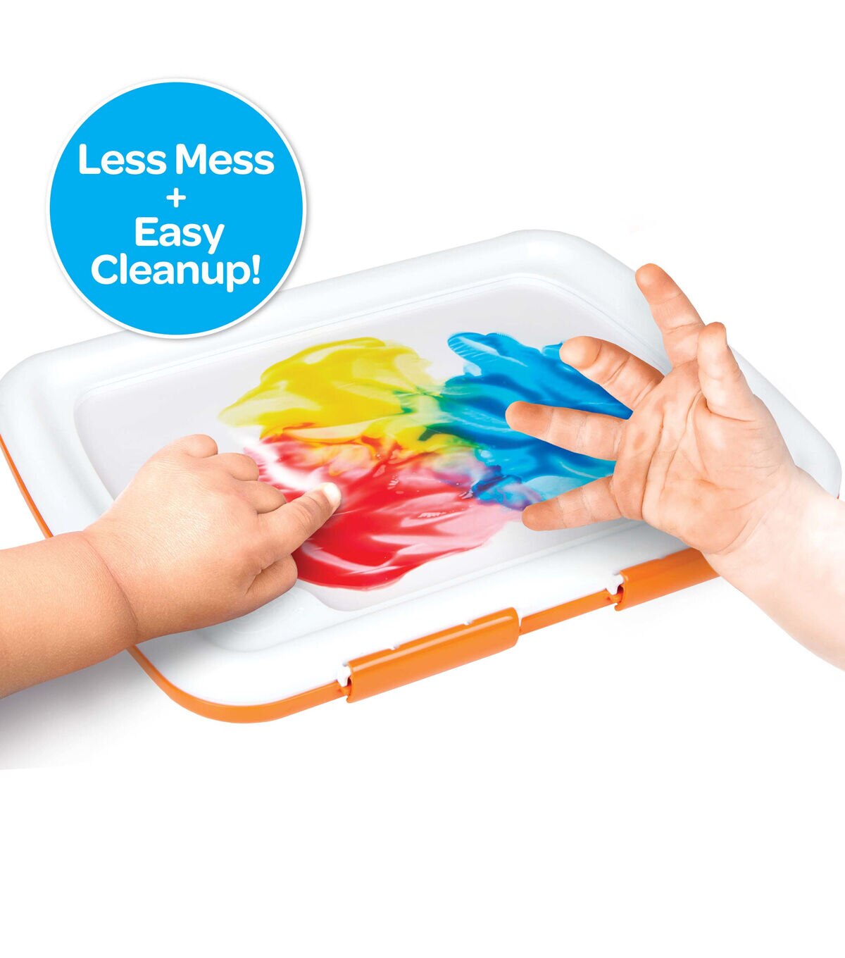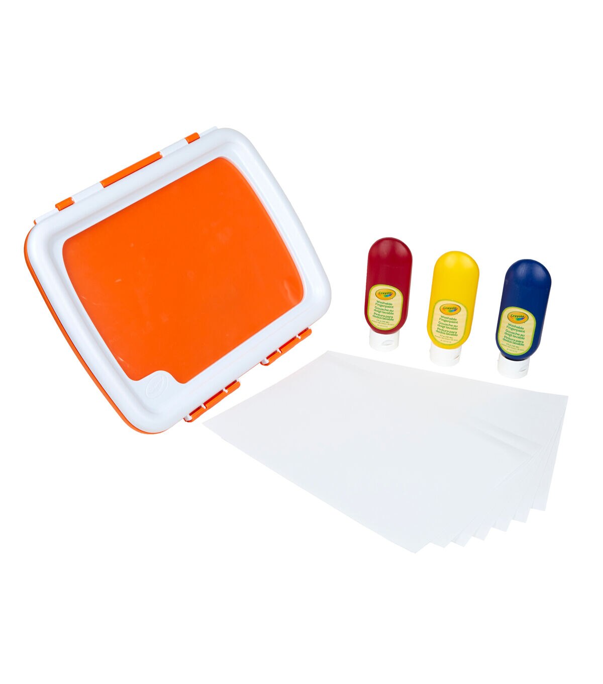 The Crayola Easy-Clean Finger Paint Set offers kids the tactile thrill of creating with their hands without all the mess! Little artists can finger paint on top of the flexible covering while the paint and paper are contained under the locked lid to contain the mess! And the finger paint unit can easily be washed in the sink or on the top rack of the dishwasher. The included Crayola Washable Paint colors include bold hues of Red, Blue and Yelllow. The paint washes from skin and most washable clothing. Ideal for toddlers age 1 and up.