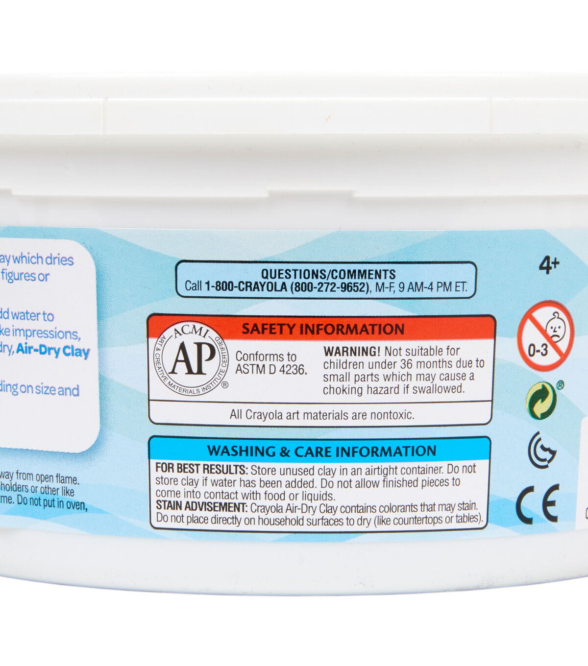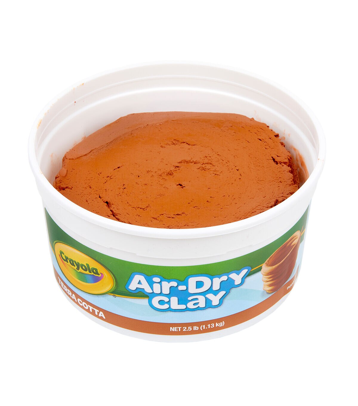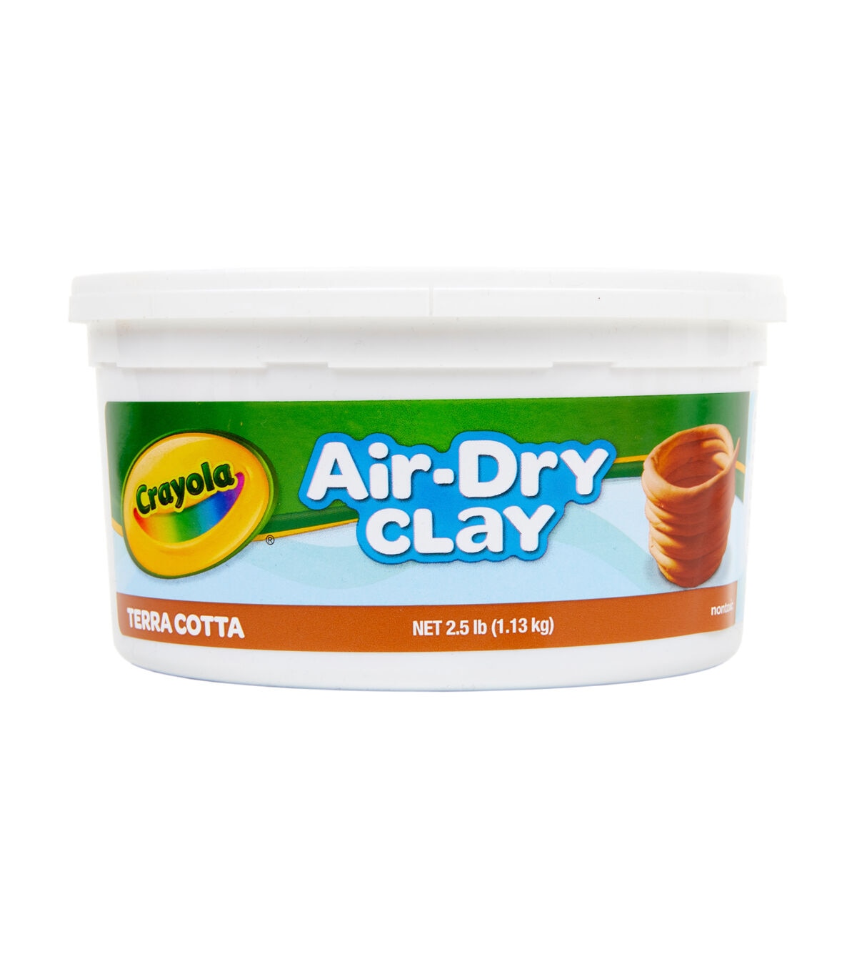 CRAYOLA-Air Dry Clay. This is a fine, natural earth clay which air- dries to a hard solid. It doesn't require baking or firing. This package contains 2-1/2 pounds of clay. Color: Terra Cotta. Nontoxic. Conforms to ASTM D 4236. Made in USA.