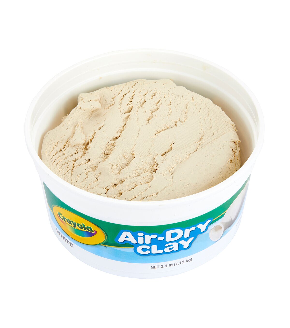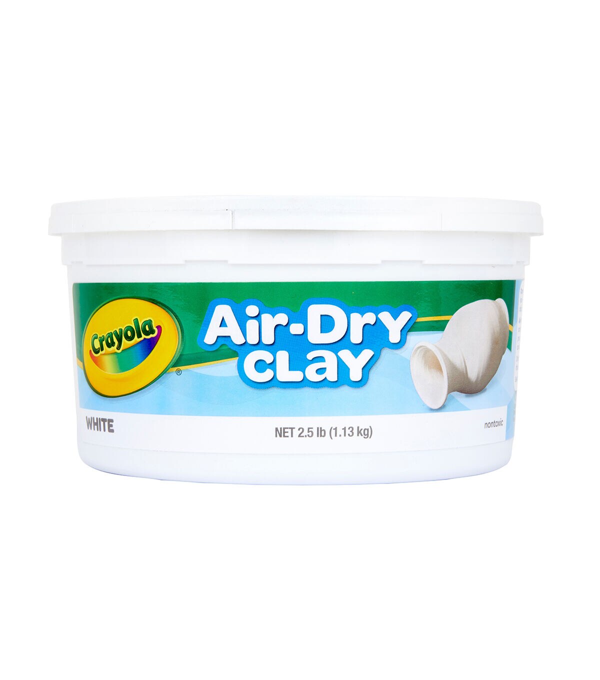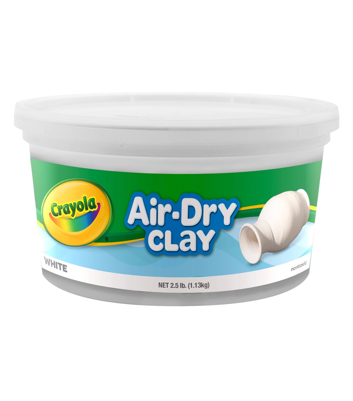 Crayola Air Dry Clay in a 2.5 pound resealable Tub. White clay. Air Dry Clay is a fine, natural white earth clay which air dries to a hard solid. Use it to make clay sculptures, decorative items or plaques. No baking or firing needed! Coil, model, sculpt,