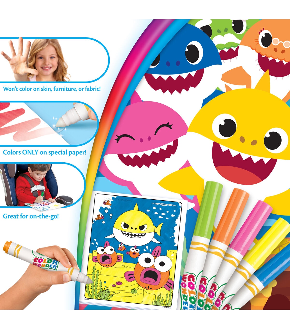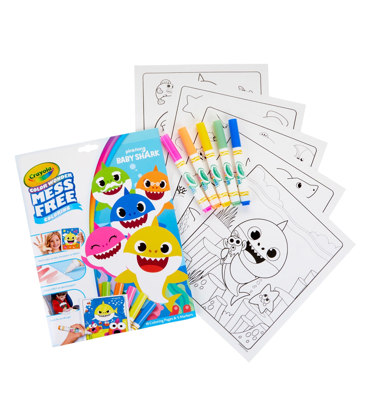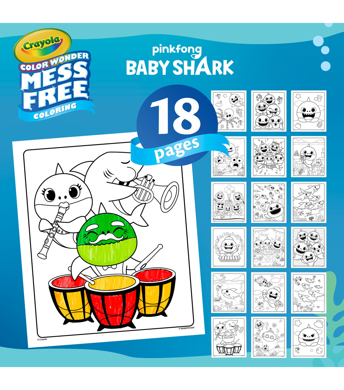 - Contains 18 Baby Shark Coloring Pages and 5 Color Wonder Markers.