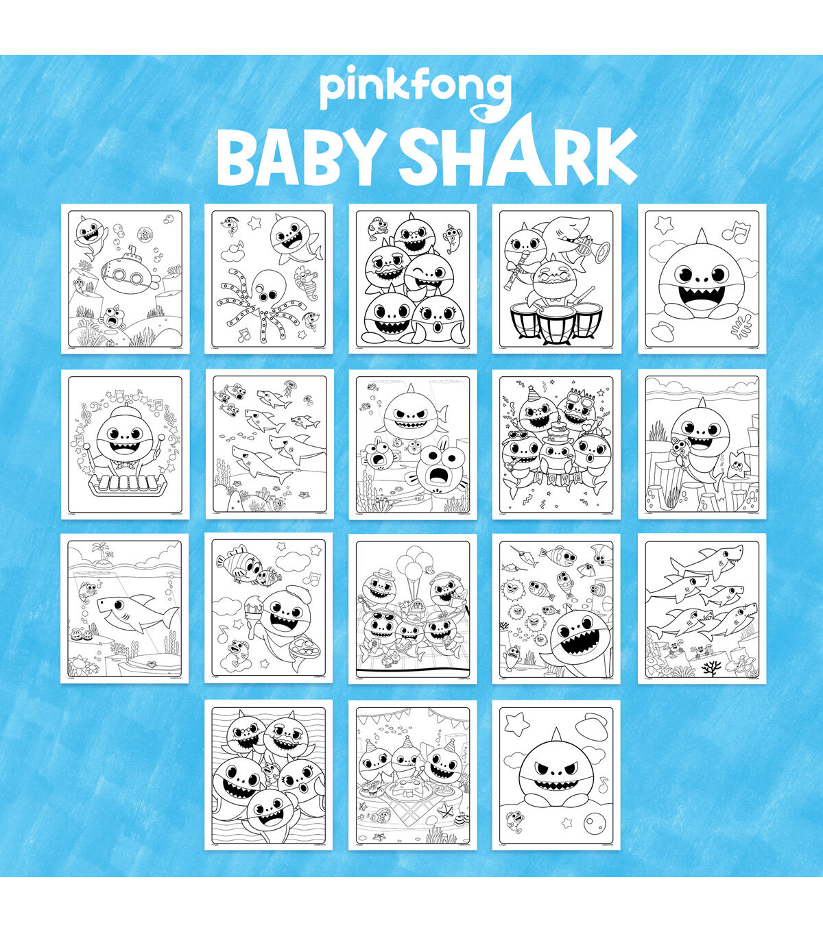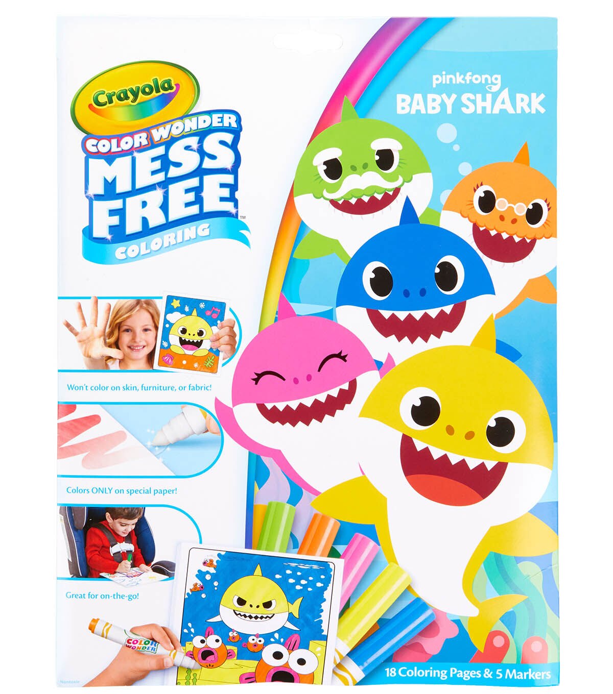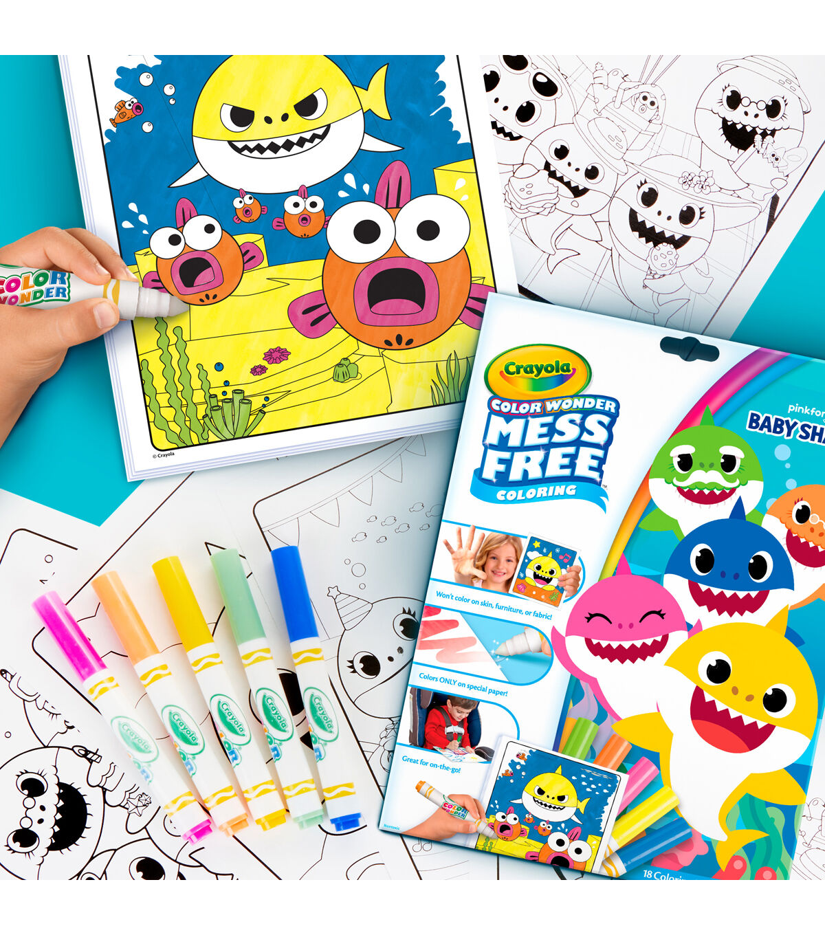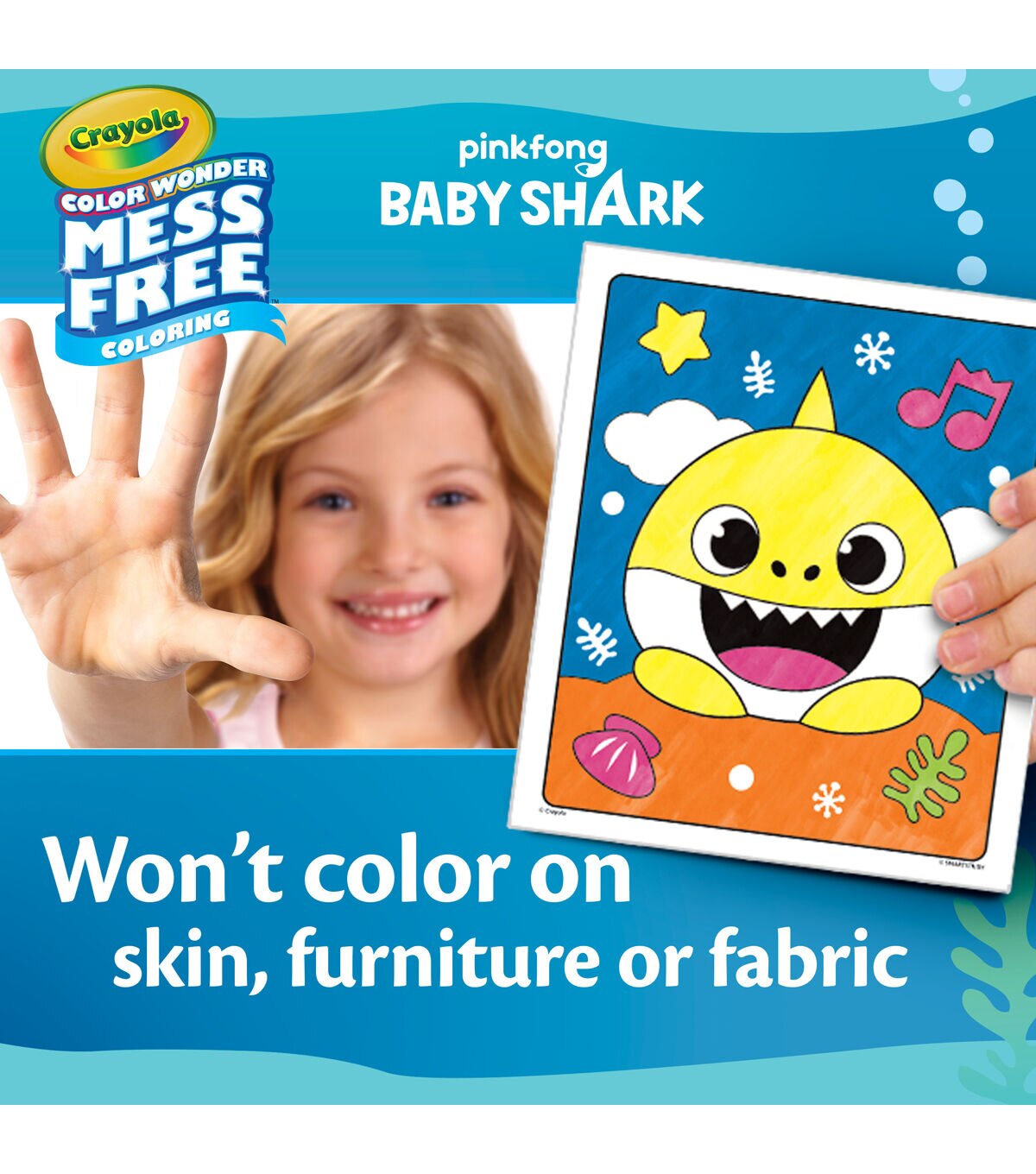 - Contains 18 Baby Shark Coloring Pages and 5 Color Wonder Markers.