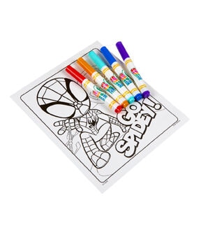 Kids can color their favorite webslinger in a magical, mess-free way with Crayola Color Wonder! Color Wonder colors appear only on special Color Wonder paper, not on skin, clothing, or carpets. This set contain 18 action-packed coloring pages depicting scenes starring Peter Parker as Spider-Man, and featuring many of his friends from the Spider-Verse, including Miles Morales as well as other Marvel Universe friends! Each page works with all Color Wonder markers, paints and stamps. The convenient “foldalope” packaging works as reusable storage for your coloring pages and markers. Includes 18 Spidey pages and 5 Color Wonder Markers. Makes a great gift for girls and boys ages 3 and up!