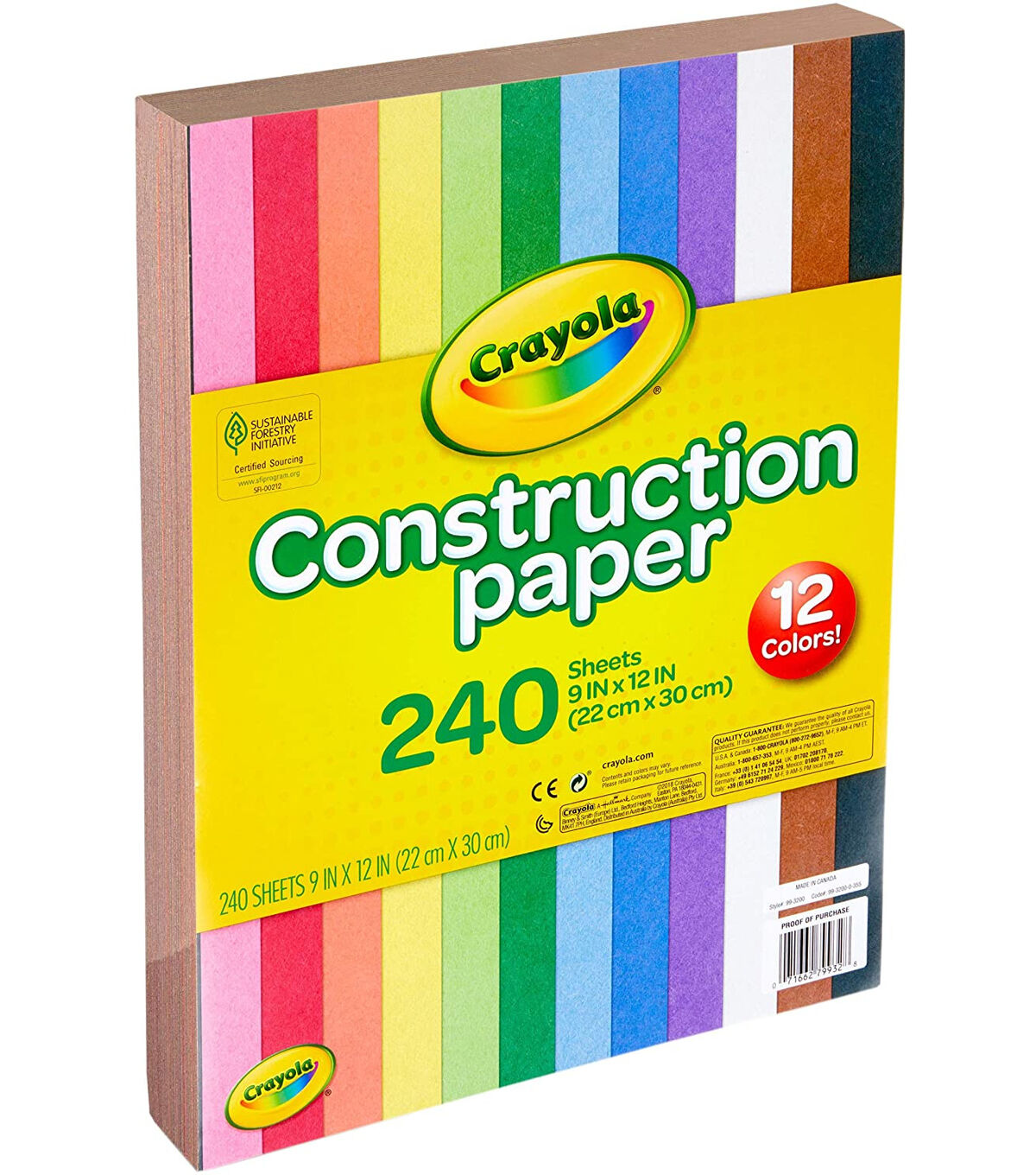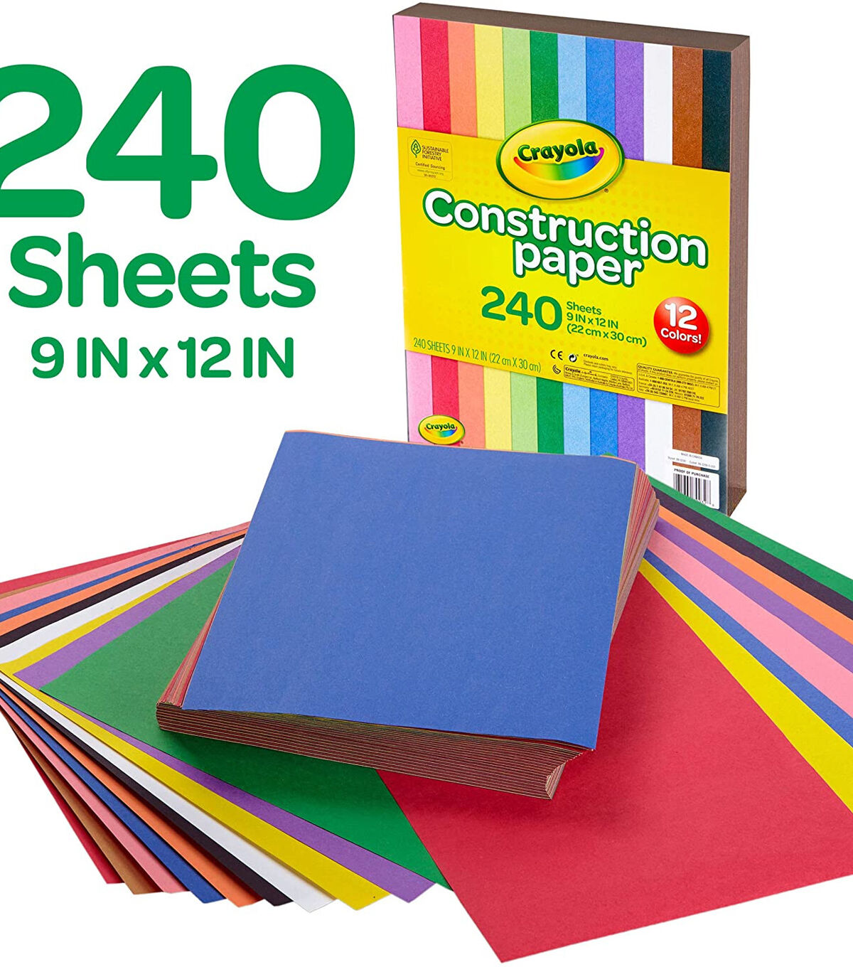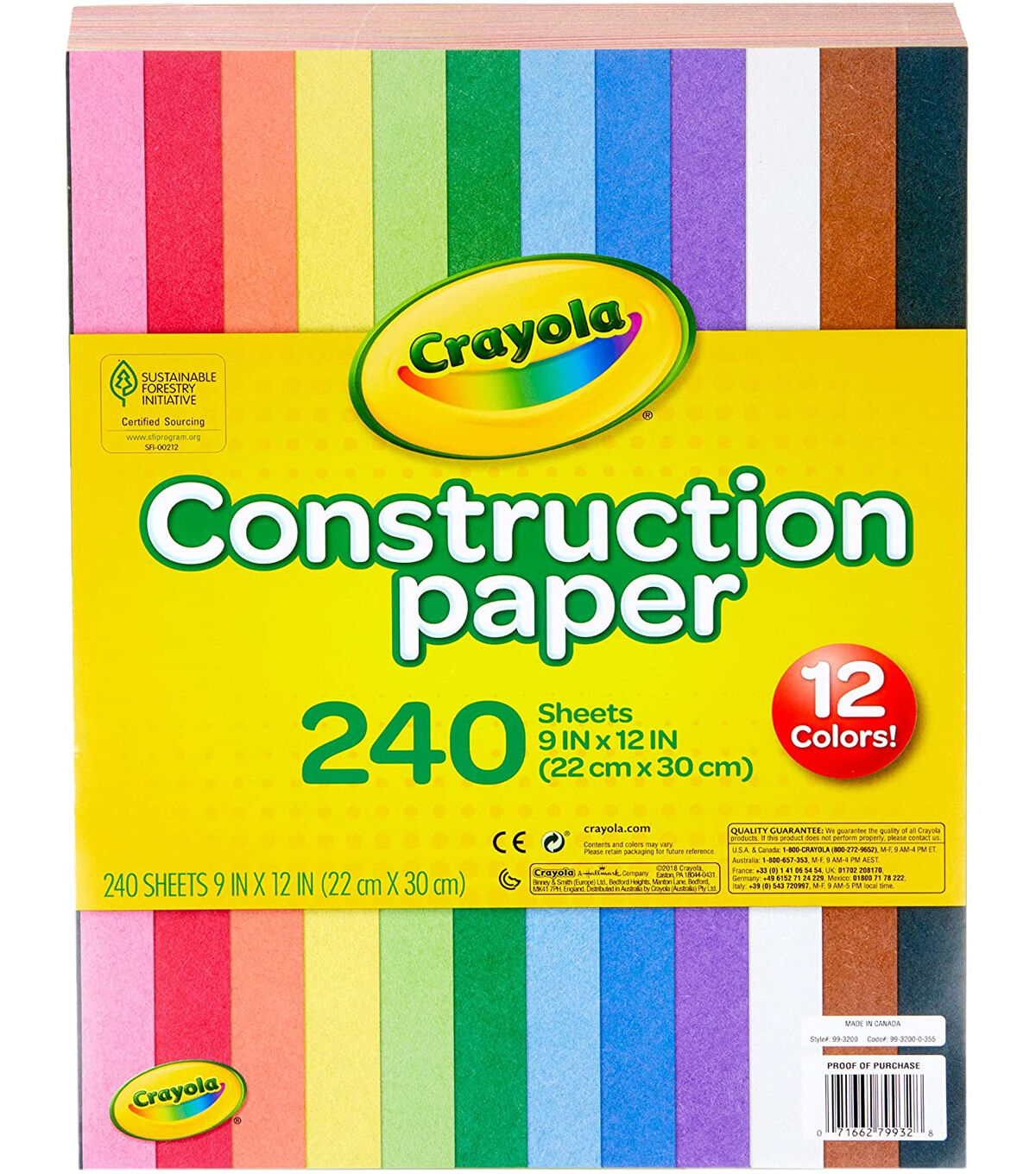 CRAYOLA-Construction Paper Pack. Cut, glue, fold, and draw. This package contains 240 9x12in papers: thirty each of eight colors. Imported.