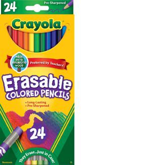 Crayola Erasables let you change and re-change drawings or correct mistakes. Now kids can complete picture-perfect homework assignments a nd reports in color without having to start over. Erasables make drawi ng worry-free . . . your pictures turn out just the way you want them!