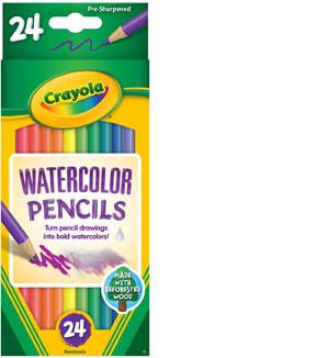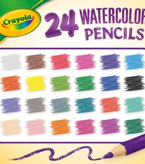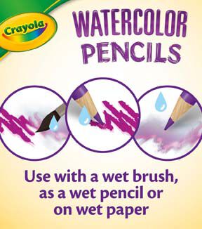 Crayola Watercolor Colored Pencils turn pencil drawings into bold watercolors! Use with a wet brush, as a wet pencil or use on wet paper. Or use dry like a traditional colored pencil.