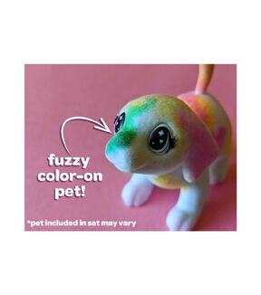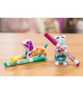 Crayola Scribble Scrubbie Pets 2-Pack Animal Toy Set brings kids crafts to life with 2 washable animal figures that little would-be groomers can customize again and again! Set aside your traditional coloring books and choose a pooch or get smitten with a kitten to color Instead with 3 Crayola washable markers for kids. Pick from Yellow, Green, or Purple markers to add unique designs to each fuzzy animal figure. When you're ready for something new, run some water over them and use the included scrub brush to get them cleaned up. Kids ages 3 and up can use the non-toxic washable colored markers to color, wash, and color again as often as they'll like! With 2 miniature animal figures and additional expansion packs (sold separately), you can collect all 12 adorable pet characters.