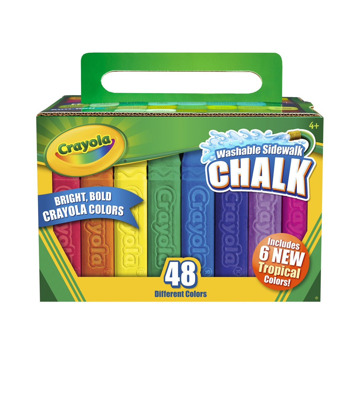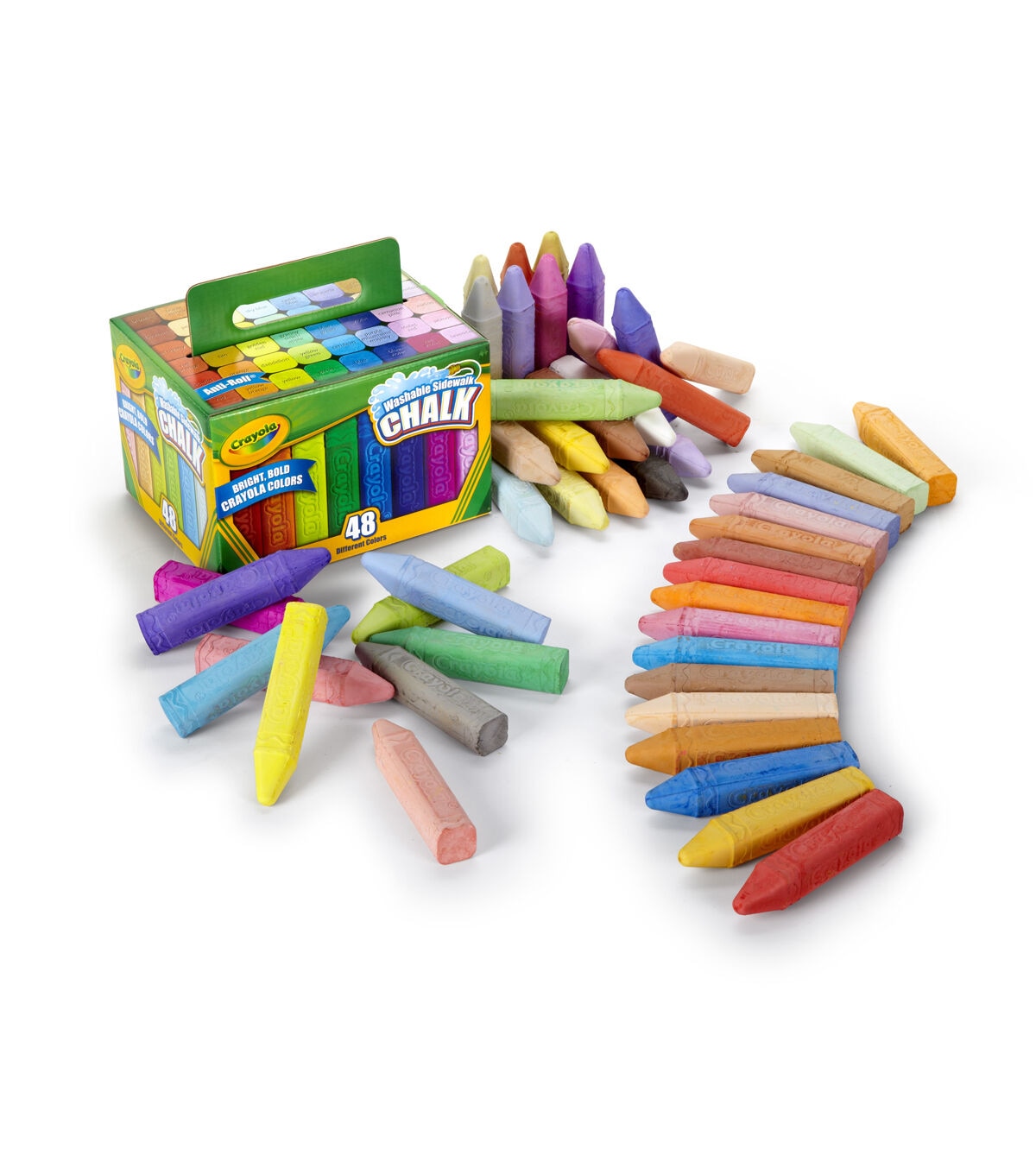 Create BIG outdoor art with the ONLY sidewalk chalk in bright, bold Crayola crayon colors! The Anti-Roll shape keeps sticks handy without rolling away and produces fine lines or broad strokes that simply wash away with water. Includes 48 Sidewalk Chalk sticks in exclusive Crayola crayon colors