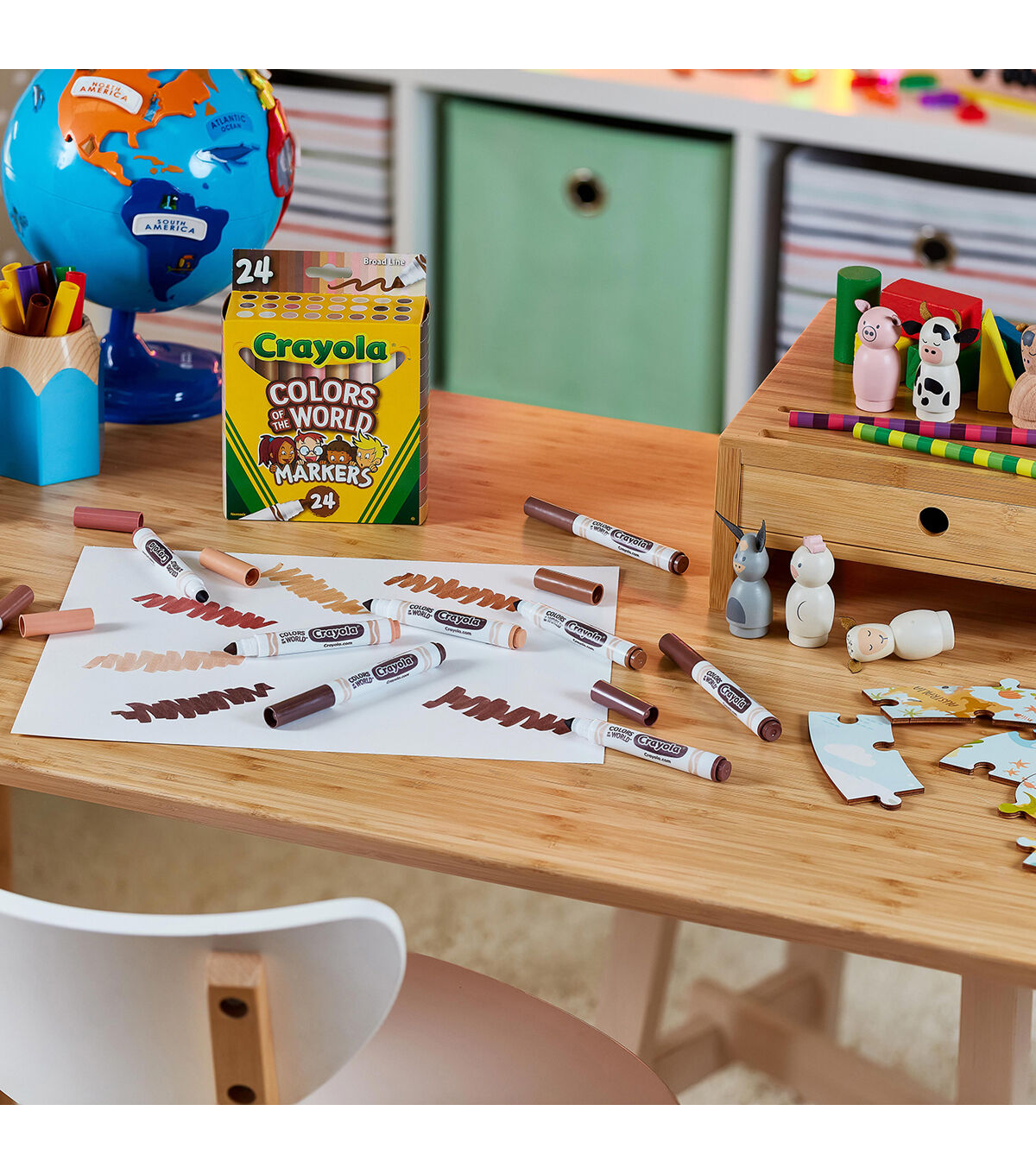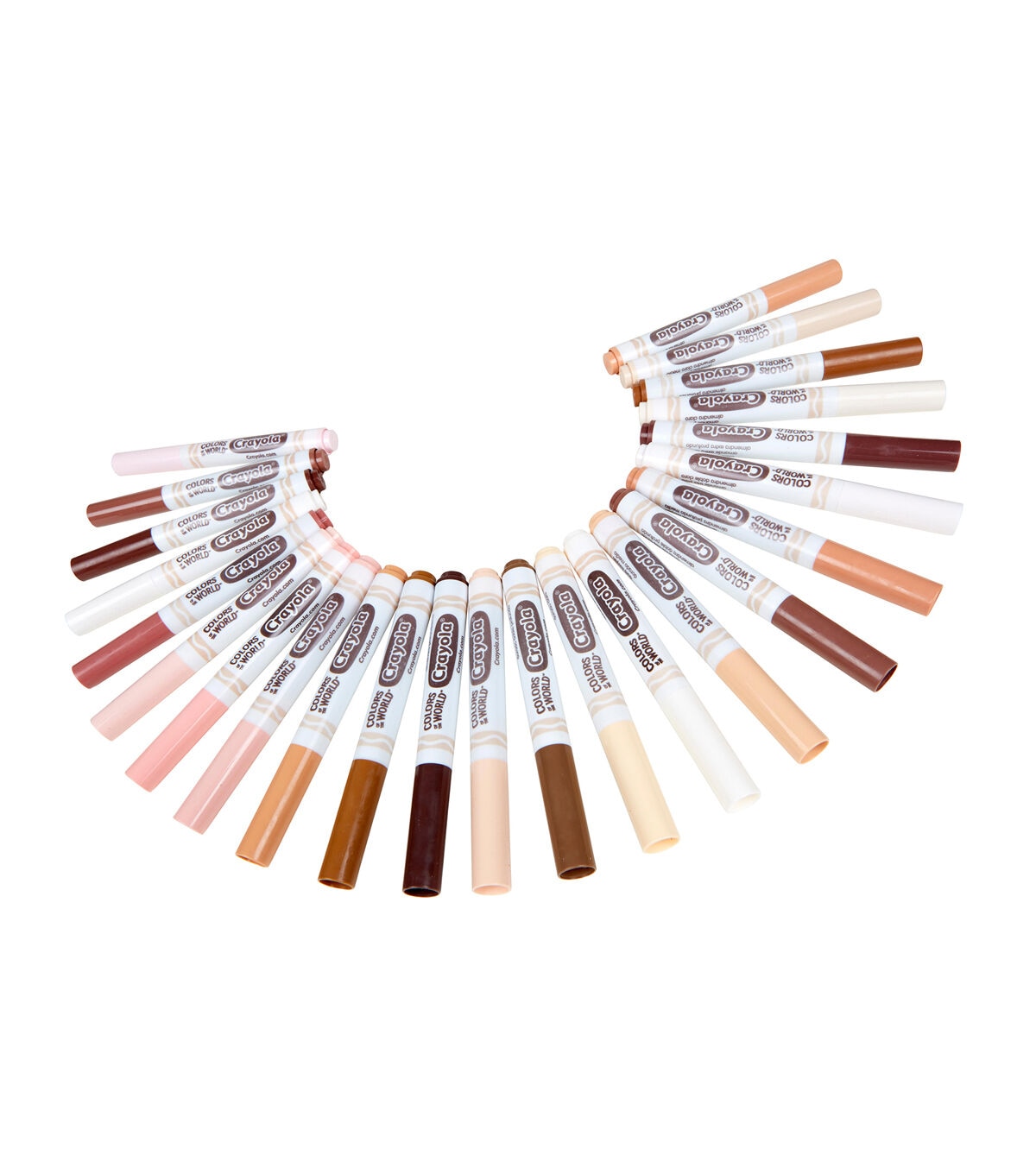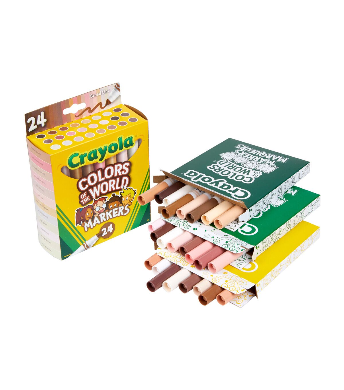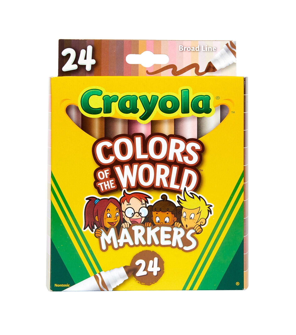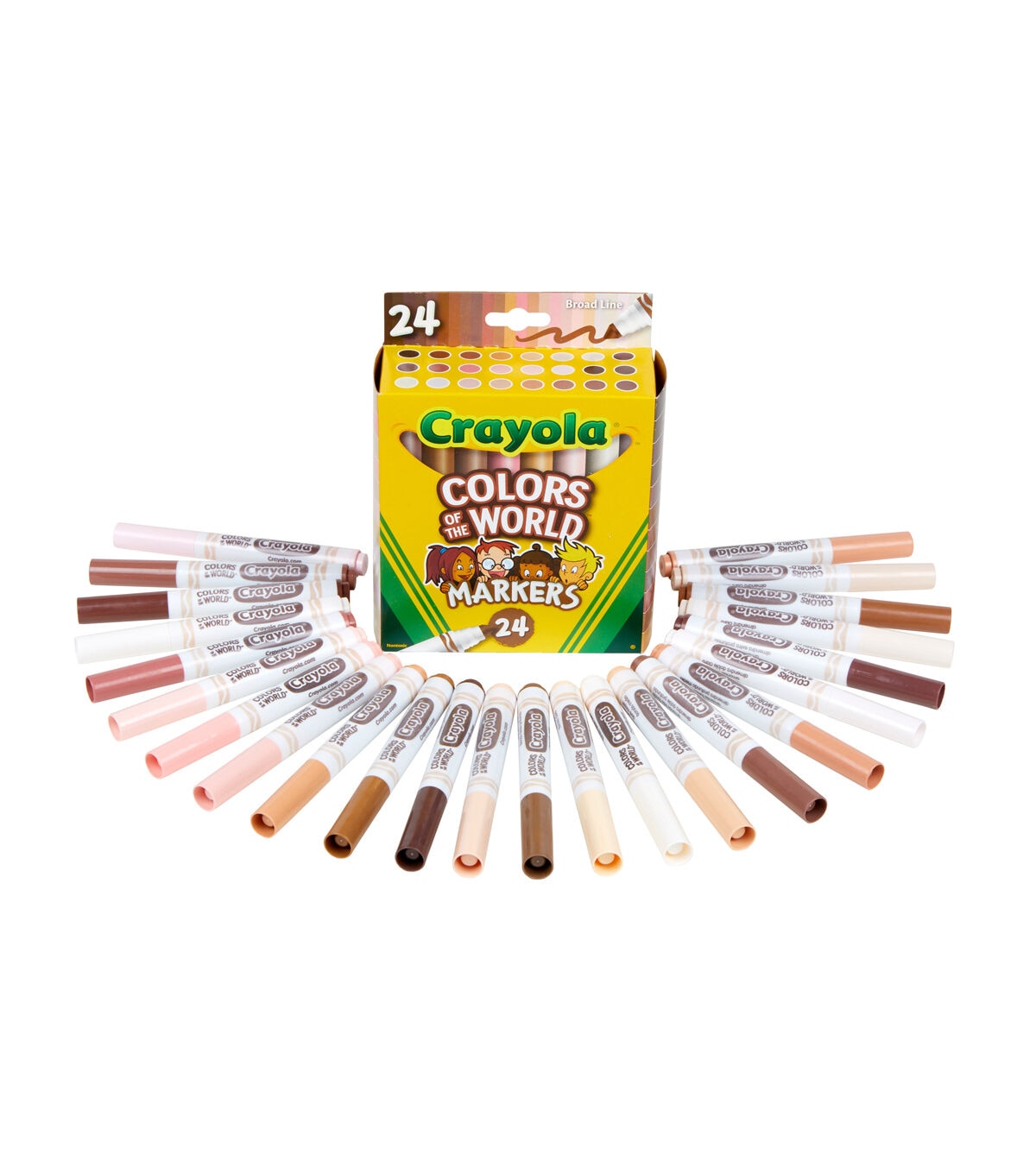 Crayola Colors of the World Markers contain 24 specially formulated colors representing people of the world. These washable skin tone markers are an exciting addition to your marker collection, making coloring pages and drawings even more detailed and realistic. The subtle shades inside are formulated to better represent the growing diversity worldwide. Colors of the World fall into three main shades: Almond, Golden and Rose – and all the darker or lighter shades in between. This pack includes 24 new marker colors that represent people from around the world. Marker colors wash from skin and most washable clothing. Pair with Crayola Coloring Books or pick up Colors of the World Crayons!