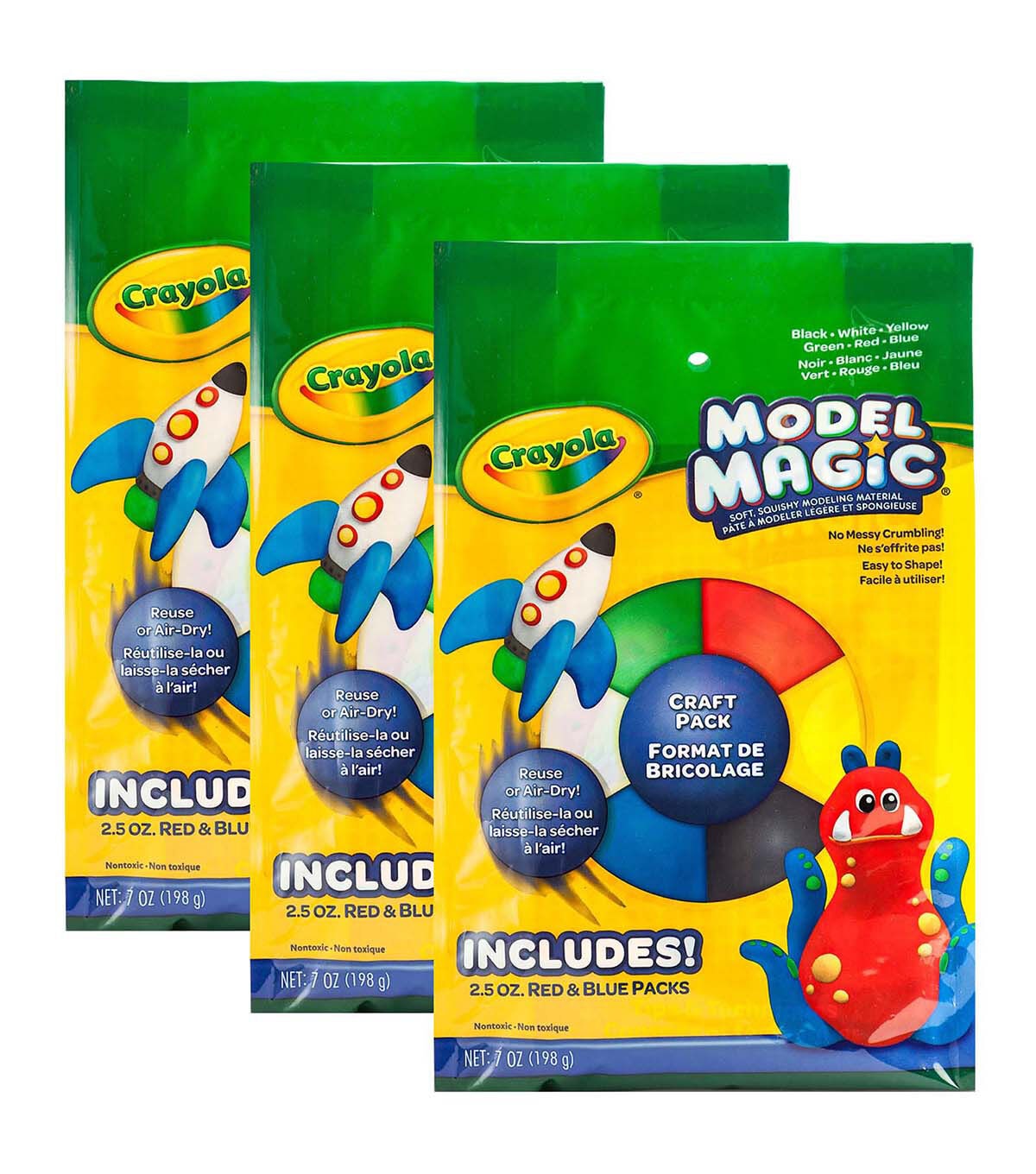 It's time to get crafty with this 6 Pack Model Magic Set! Kids can use the lightweight modeling clay alternative to make fun DIY crafts. Each Model Magic Craft Pack features 2 (2.5 oz.) Model Magic Packs in Blue and Red, plus 4 (0.5 oz.) Model Magic Packs in Green, White, Black, and Yellow. Air dry their finished art project overnight or store the Model Magic in a resealable container to play another day! Sold as a total of (3) Model Magic Craft Packs.