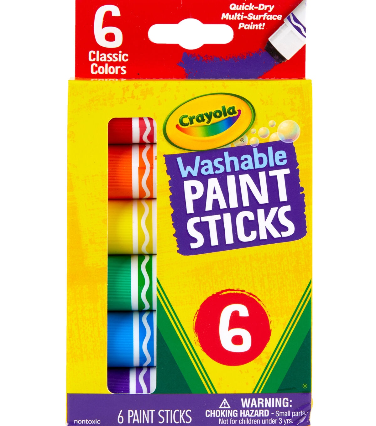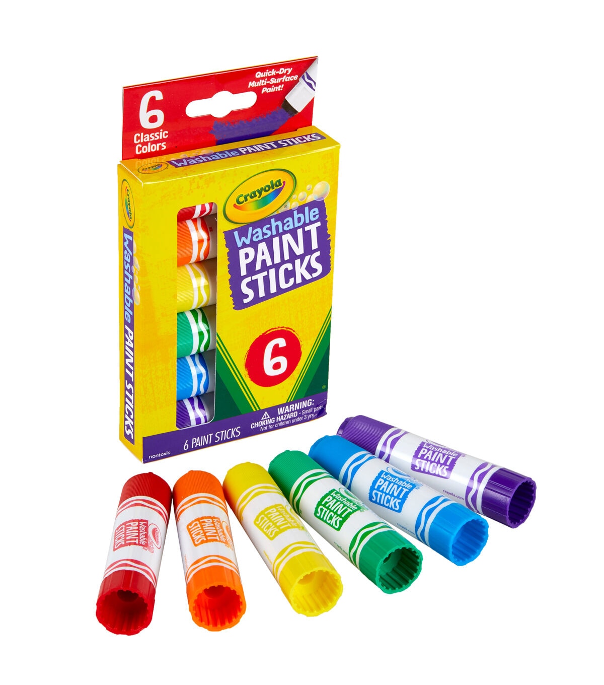 Crayola Washable Paint Sticks are the perfect less mess solution for paint, perfect for projects and crafts big and small! Paint Sticks allow you to have all the fun of paint without all the mess! No set up, clean up, or water is required and they easily wash clean from skin and most washable clothing. Crayola Washable Paint Sticks go on like a glue stick, but look just like paint. They offer full coverage and are designed to work on a variety of surfaces. This less mess kids' paint set includes 6 Washable Paint Sticks in assorted colors: Red, Yellow, Green, Blue, Purple and Orange. Ideal paint set for kids, ages 6 and up.