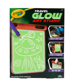 Every day is a glow in the dark party with the Glow Art Studio from Crayola! Perfect for kids who love glow in the dark toys, this unique art set includes a special battery operated Light Wand that kids can use to draw on the included Glow Canvas, and suction cups so kids can hang it on windows or other surfaces to show their art off. The 8.5"x10" canvas is the perfect size to take on night road trips or sleepovers. The drawings magically disappear as the glow fades away, so kids can keep creating again & again! When you're ready to clean up or take it on a trip, your glow pen can be conveniently stored in the top of your unit and you can use the wide top to serve as a handle for easy carrying! Light up the holidays with a glow art themed gift set, or make it a birthday surprise! It's a wonderful gift for girls and boys, ages 6 & up!