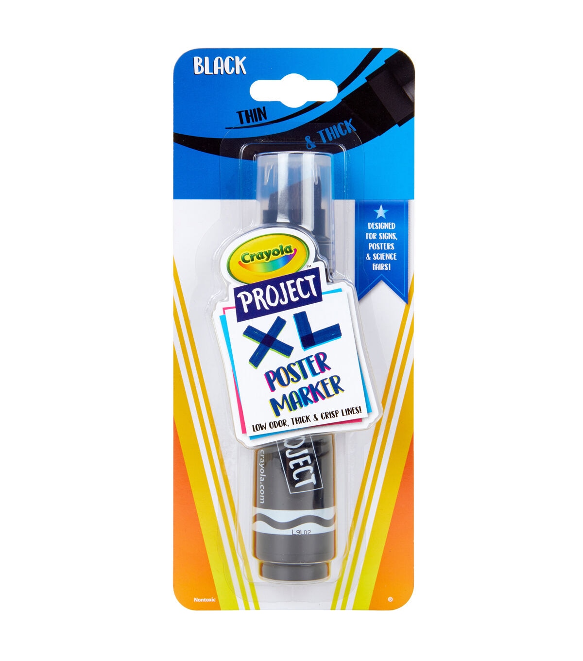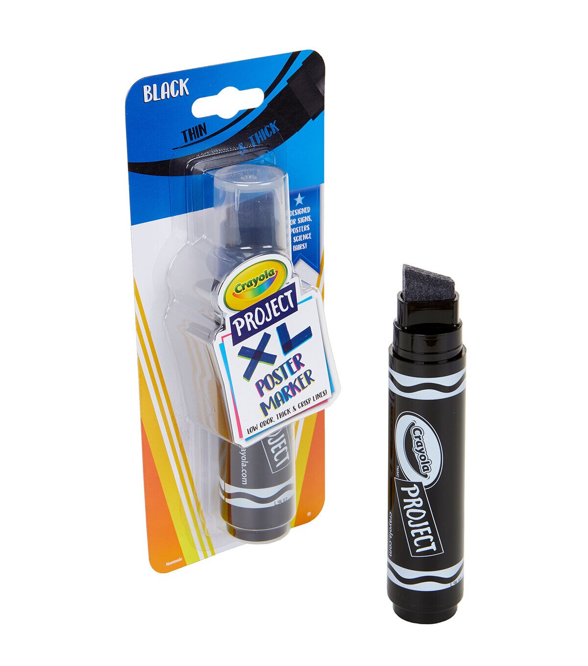 This Crayola XL Poster Marker is perfect for posters, signs, decorations, and more! This supersized marker has an extra wide nib that provides quick, full-coverage for art projects and crafts. The chisel tip can also create thin lines when held at an angle. School projects really stand out with this heavy duty Crayola Marker. Includes 1 Black XL Poster Marker. Ideal for adults and kids, ages 6 and up.