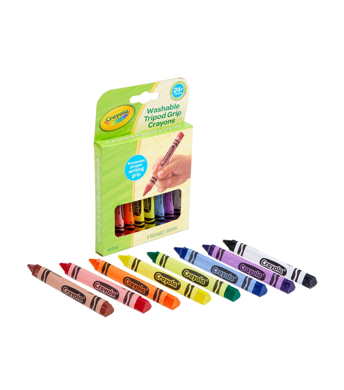 CRAYOLA-My First Crayola Triangular Crayons. Let your little ones express themselves! These washable crayons are tripod shaped to encourage proper writing grips. The washable formula makes them easy to wash off walls with just warm water and soap! This package contains eight crayons: one each in purple, brown, red, orange, yellow, green, blue and black. Recommended for ages 1 and up. Non- toxic. Conforms to ASTM D4236. Imported.
