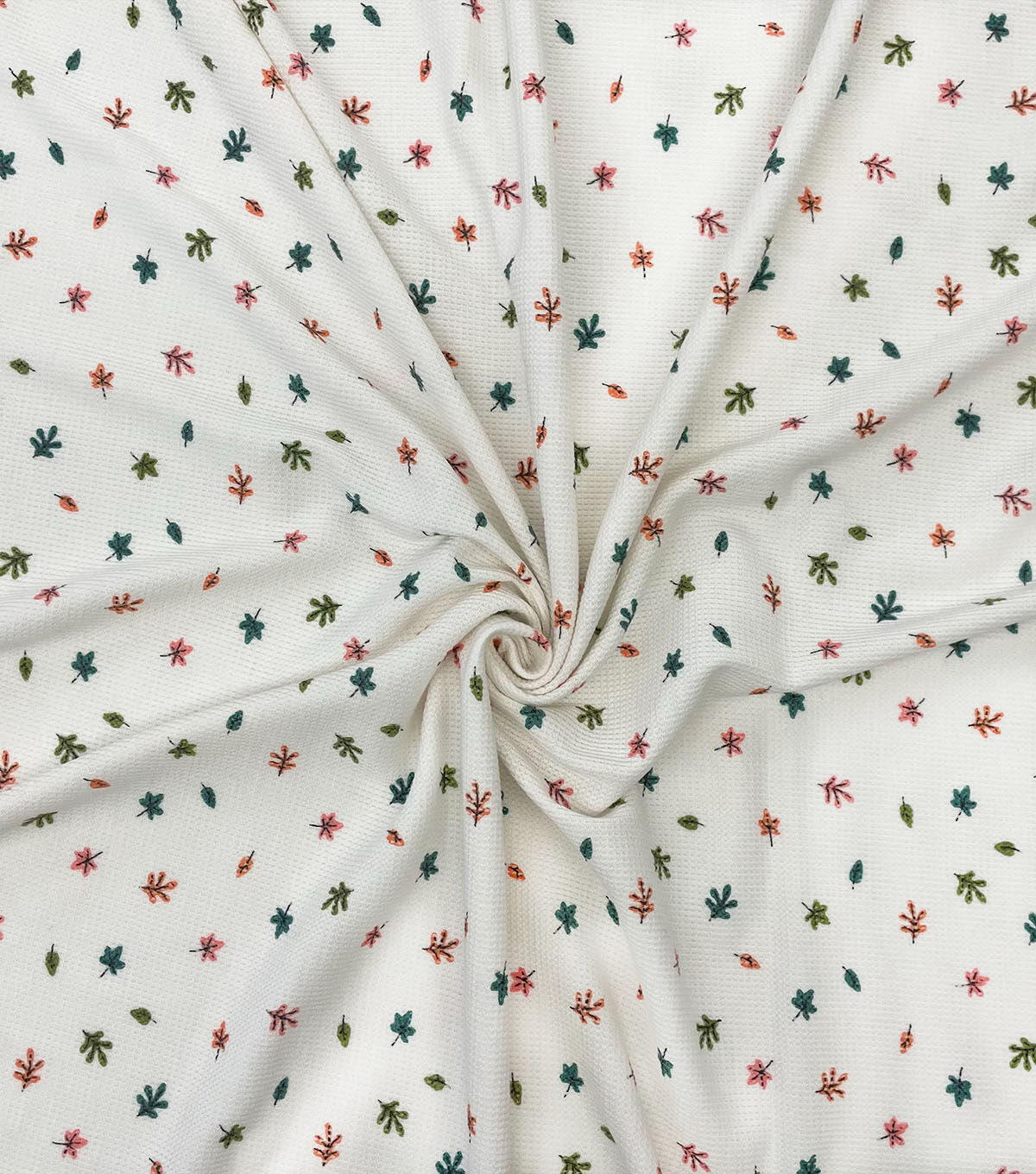 • Cream Fall Leaves Waffle Knit Fabric by POP!