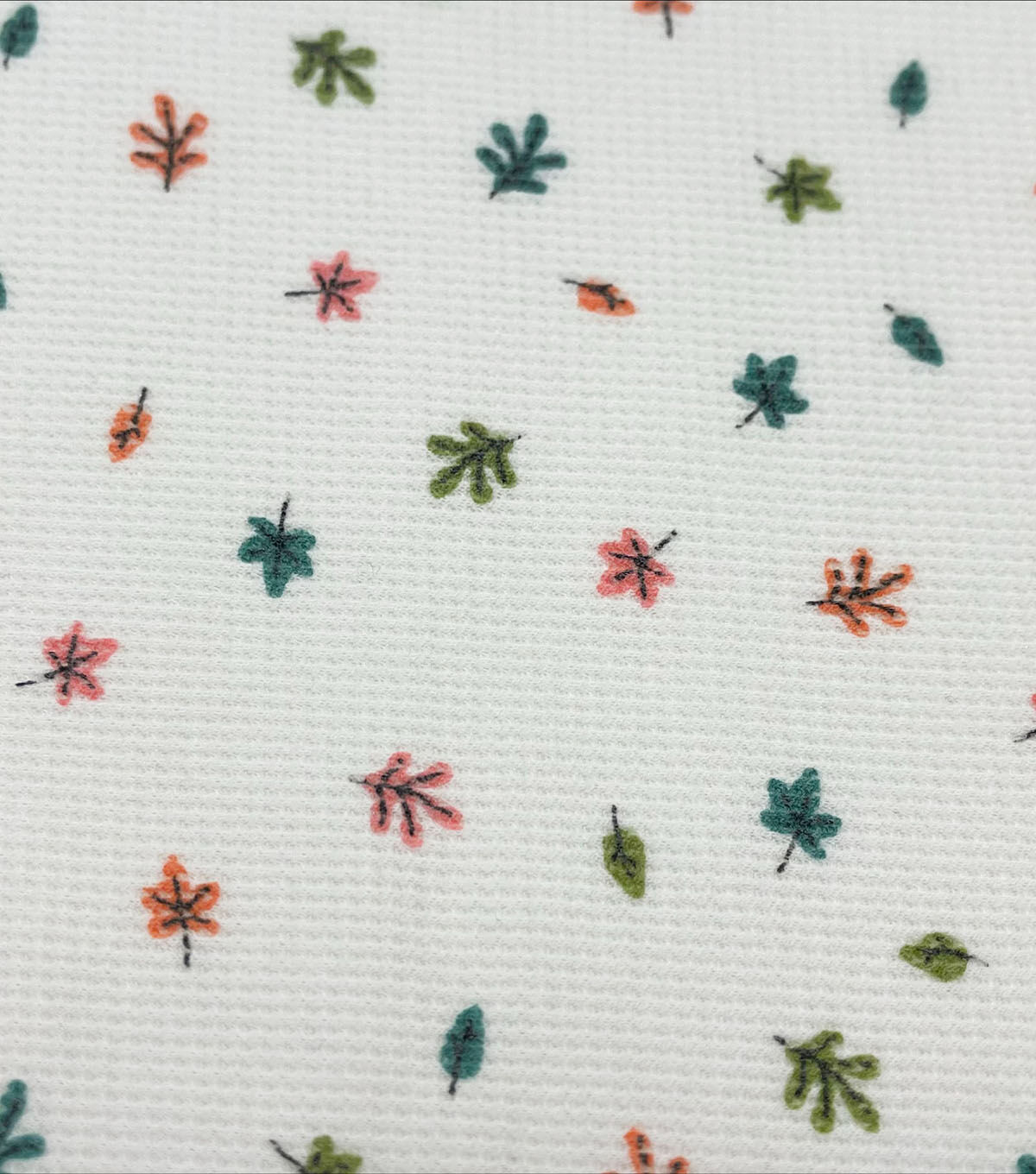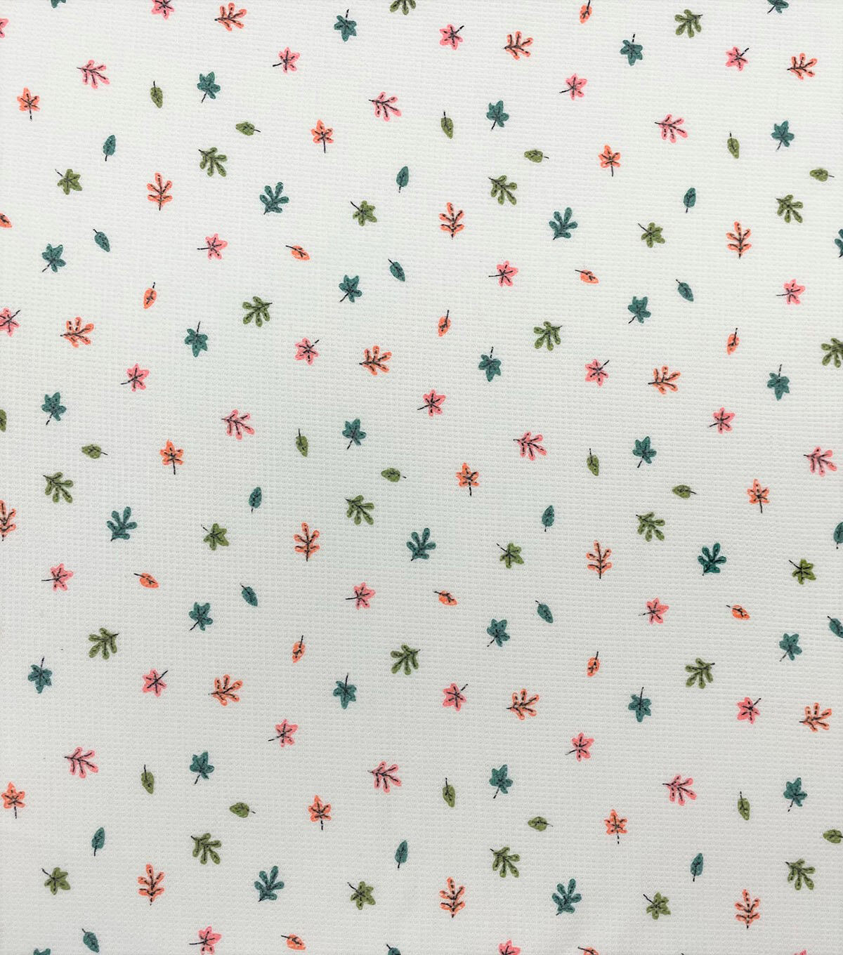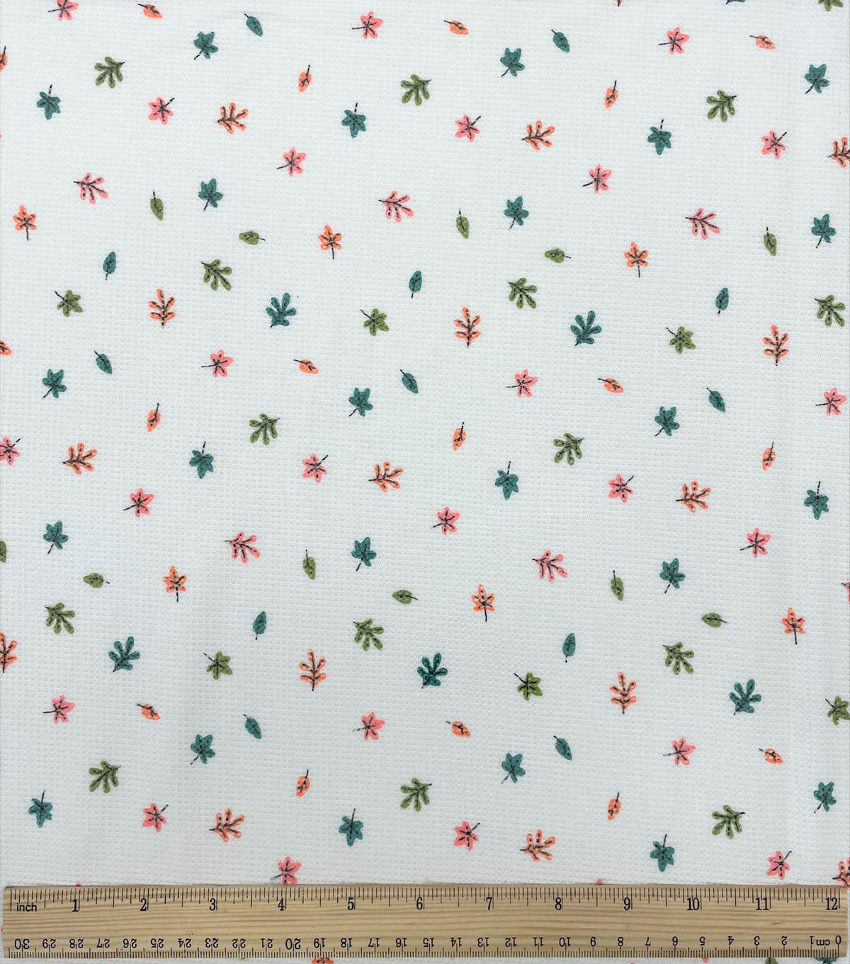Cream Fall Leaves Waffle Knit Fabric by POP!