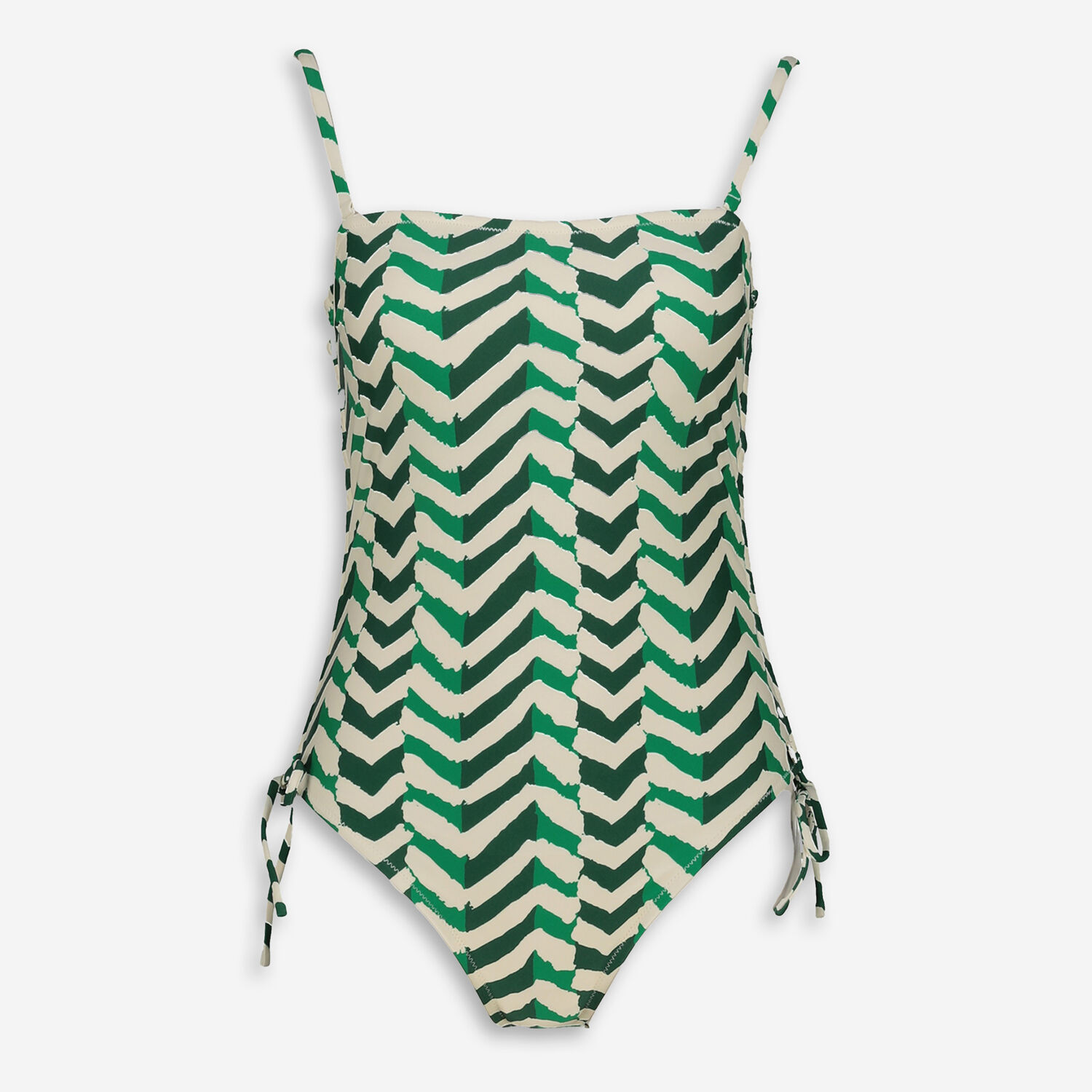 • Cream & Green Chevron Ruched Swimsuit