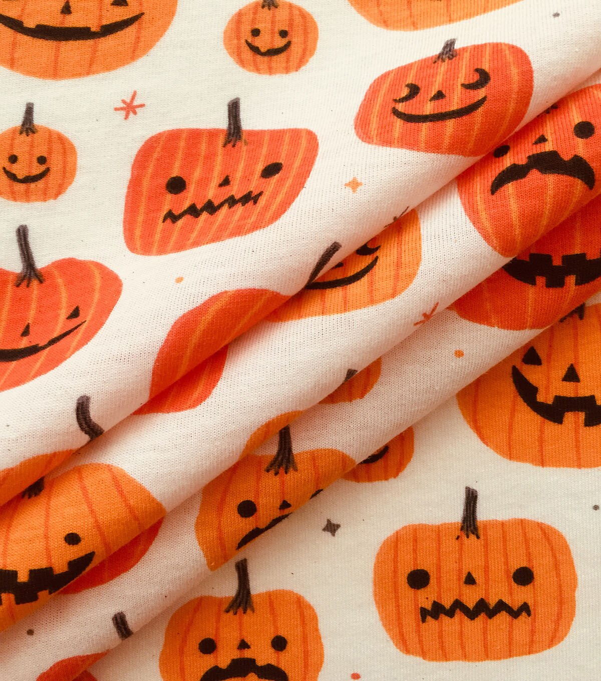 • Cream Jack O Lanterns Jersey Knit Fabric by POP!